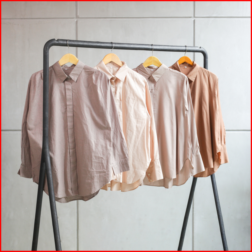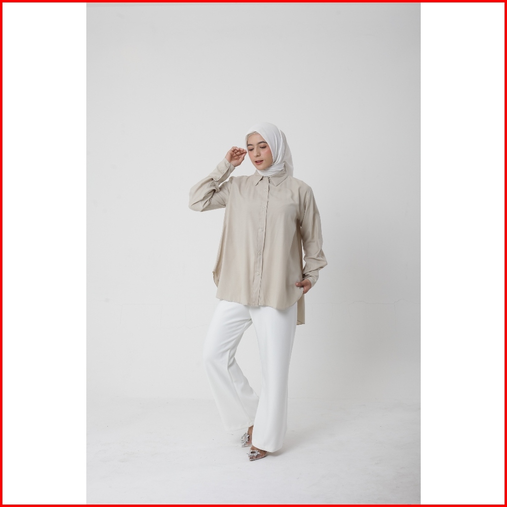 Esmira - Neeqa Kemeja Wanita Kantoran Polos Kekinian Bahan Katun Jumbo Atasan Panjang Muslim