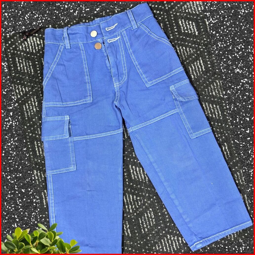 Qatana Carpenter - Celana Cargo Jeans Panjang Anak Skena Kekinian Usia 3-10 Tahun Bahan Denim