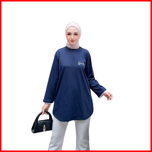 Sinctaro Baju Kaos Wanita Lengan Panjang Variasi List Kain Katun Combed 24s