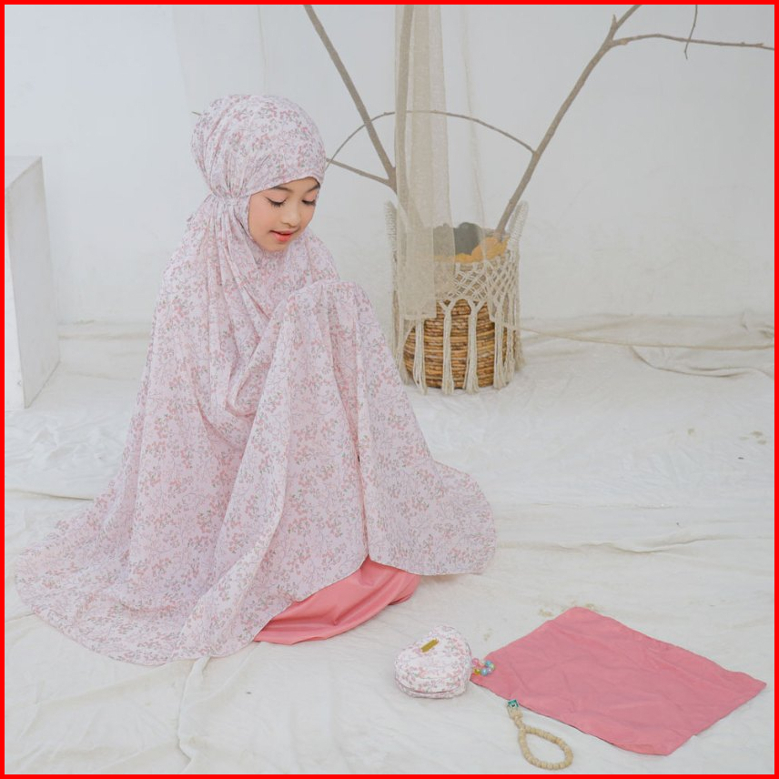 Fauziah - Mukena Anak Travel Mini Pouch Reslesting 2in1 Usia 6-12th Parasut Motif Kombinasi Polos