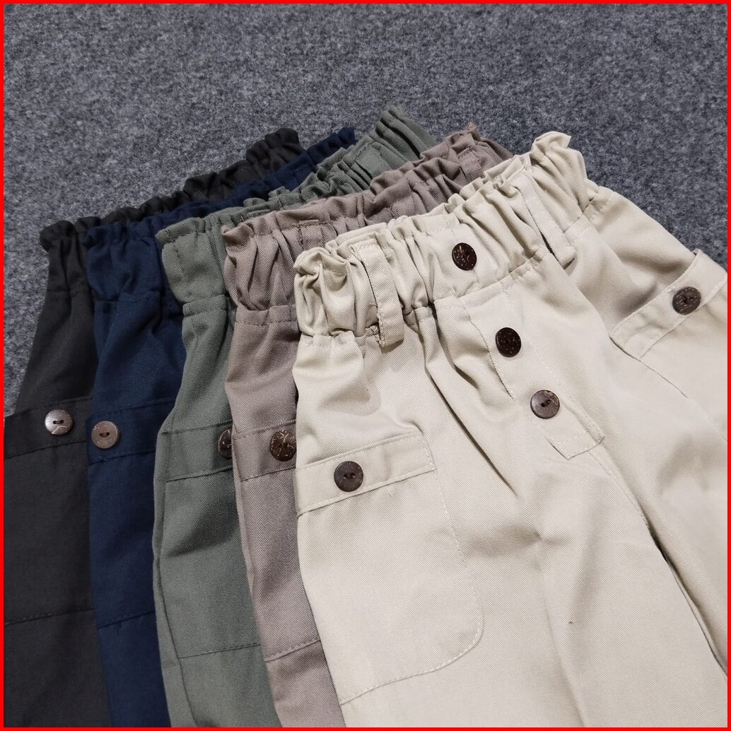 Celana Panjang Kulot Drill Anak Perempuan Motif Kancing Usia 5-14 Tahun