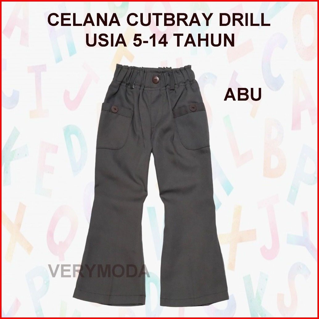 Celana Panjang Anak Perempuan Model Cutbray Kantong Bulat Usia 5-14 Tahun