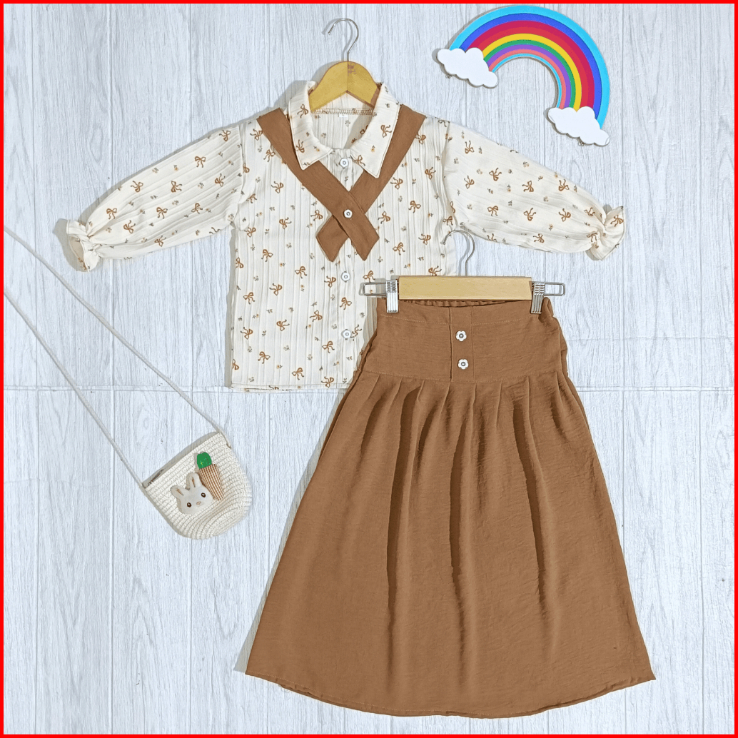 Setelan Baju Naomi Dan Rok Panjang Anak Perempuan Terbaru Crinkle Motif Ratu Usia 1-11 Tahun
