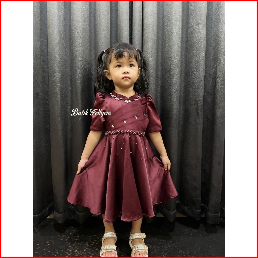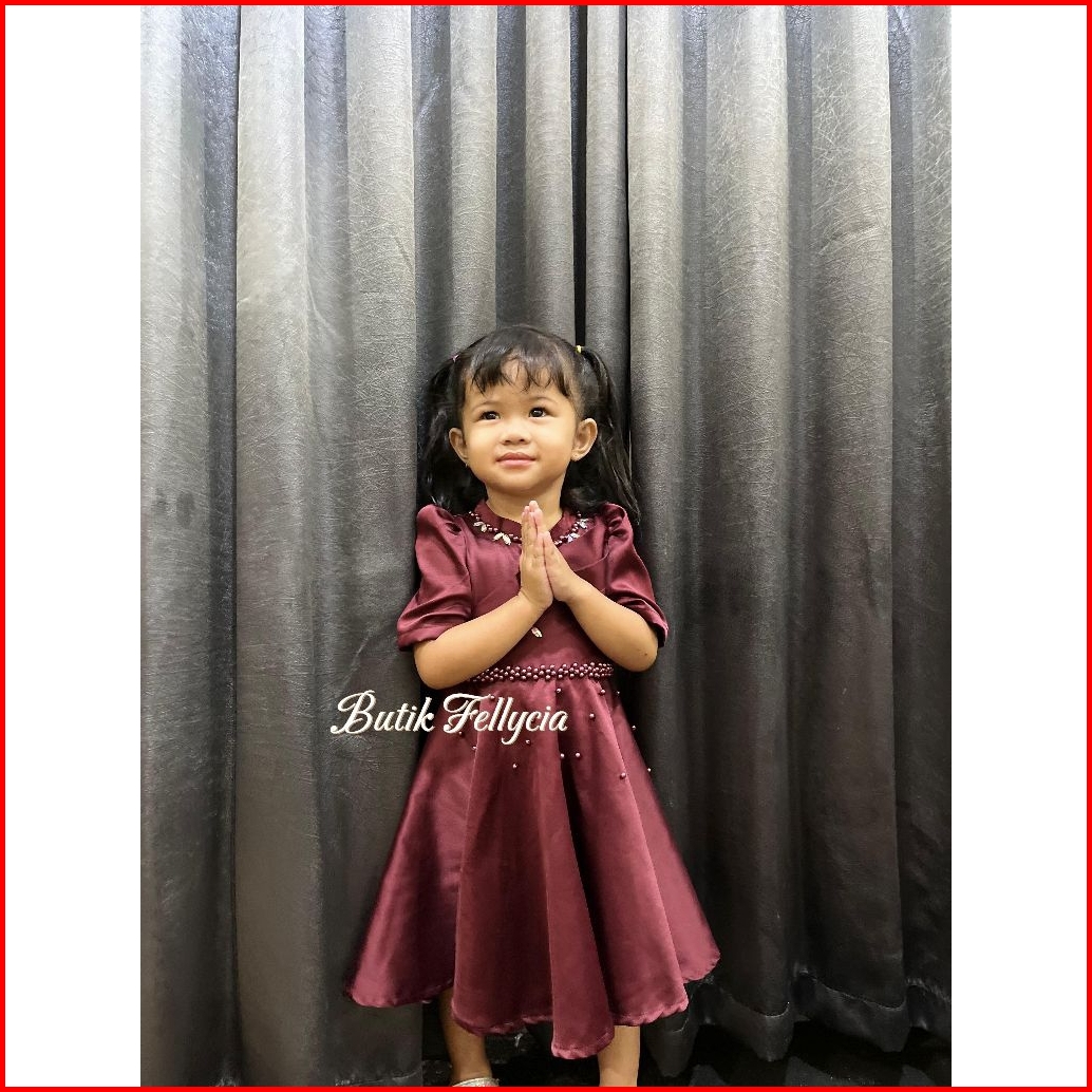 Baju Dress Fellycia Anak2 Perempuan Draperi Dada Full Payet Virall...