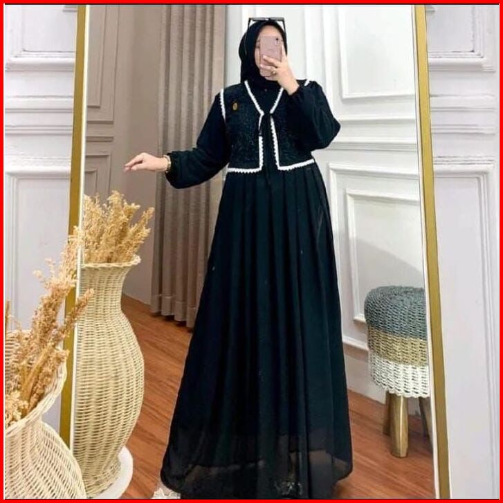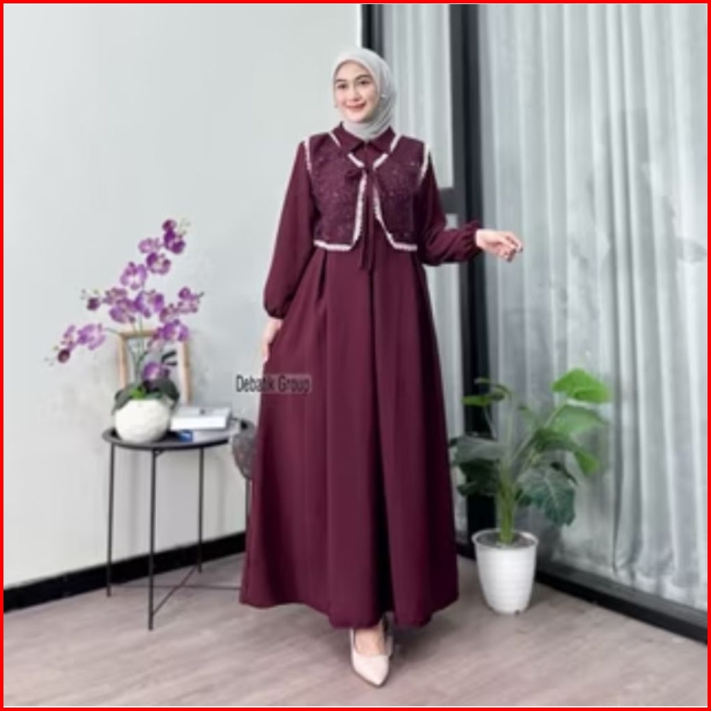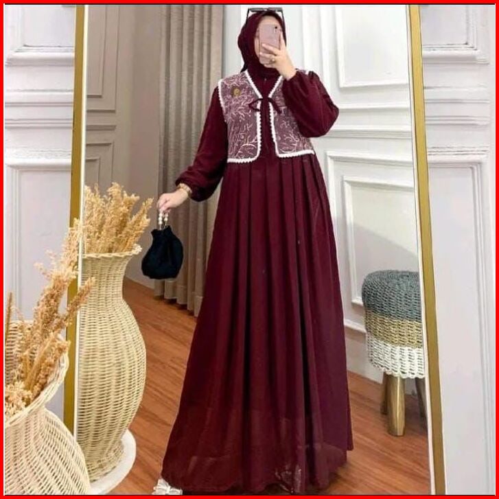Promo Kinar Gamis Burgundy Dress Syakila Mix Brukat Kombinasi Rendra Gamis Kondangan Ld 120-130