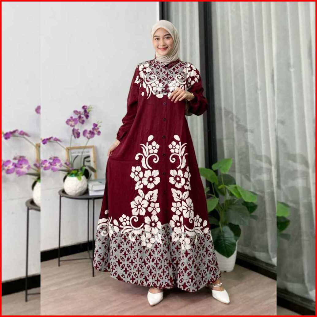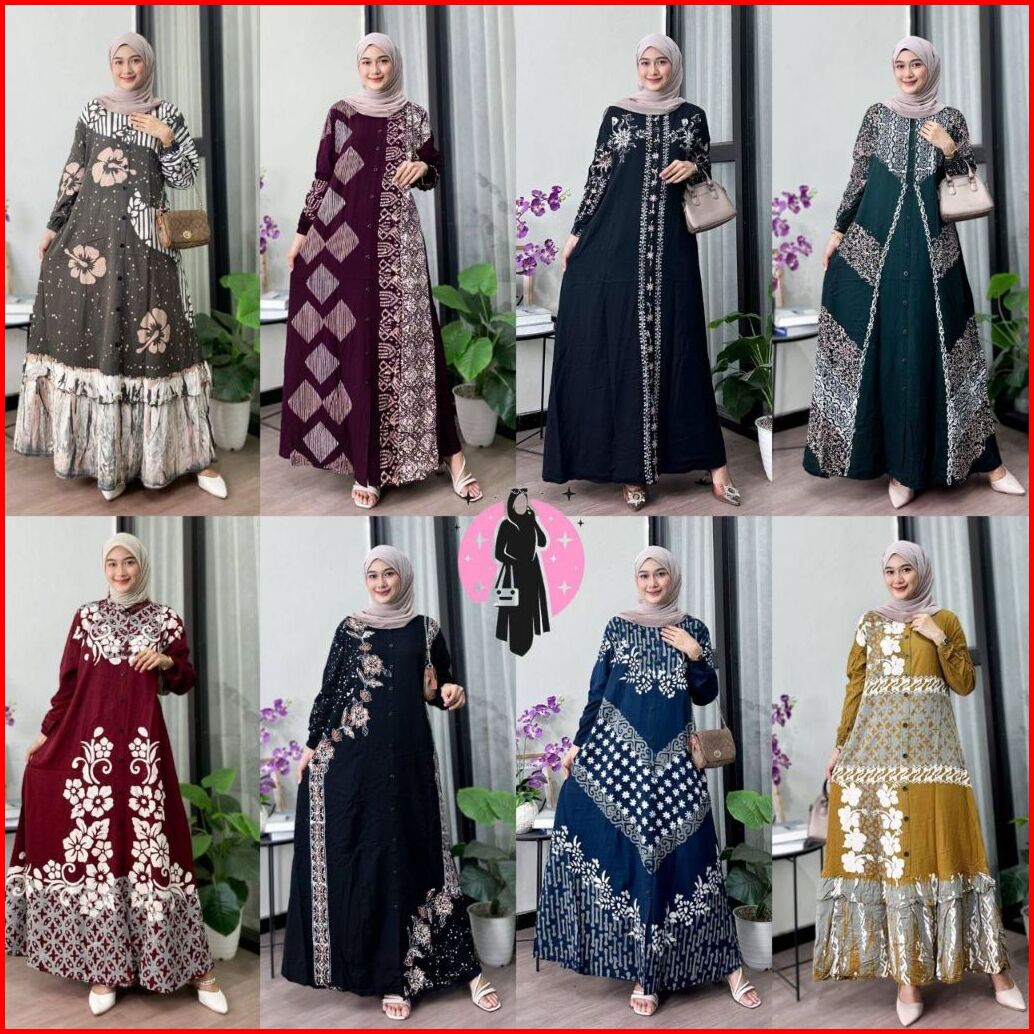Dress Gamis - Gamis Twill Ori Terbaru Pekalongan Motif Cap Malaman Dress Wanita Muslim Berkualitas Lengan Karet Tali Sam