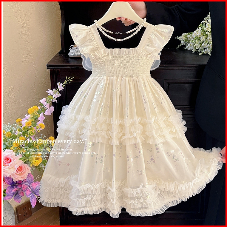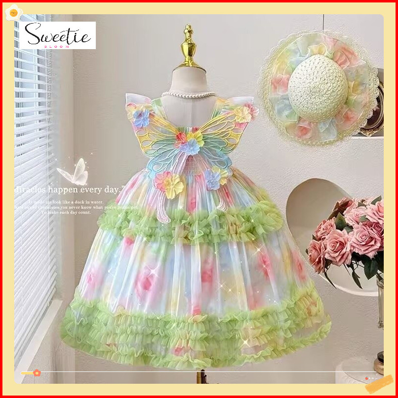 Sweetie Bloomgaun Girls Musim Panas Baru Gaya Baru Anak -anak Gaun Putri Mode Dengan Rok Sayap Cocok Untuk Ulang Tahun P