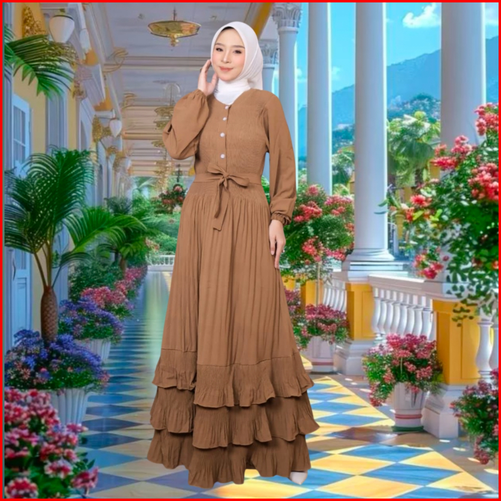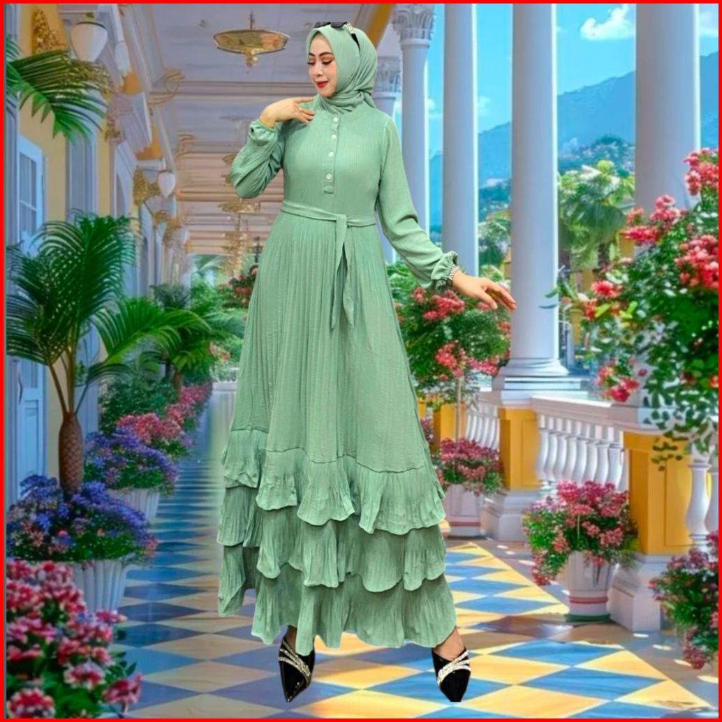 Gamis Simpel Elegant Gamis Plisket 2025 Model Baru Bahan Cringkle Airflow Gamis Fashiontumpuk Susun