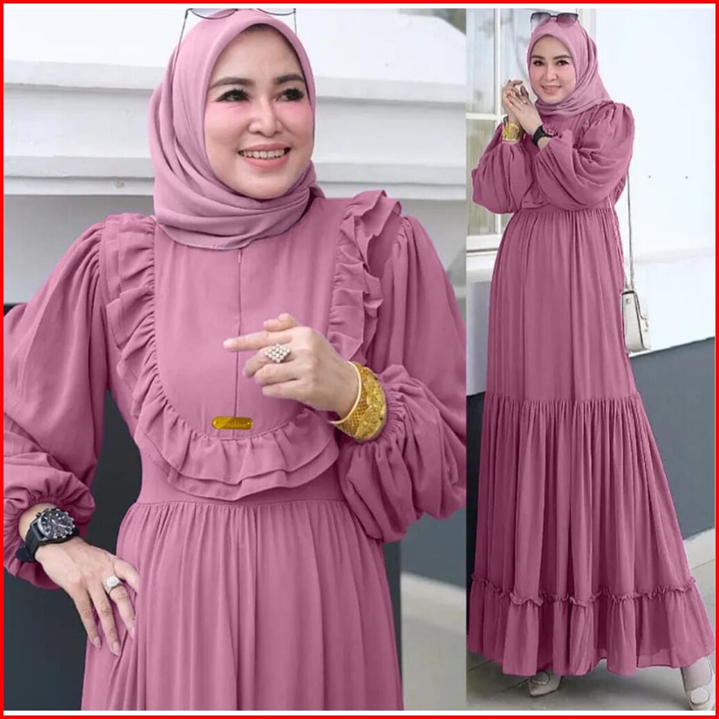 Gamis Rempel Crinkle Wanita Terbaru Gamis Resleting Depan Busui Frendly