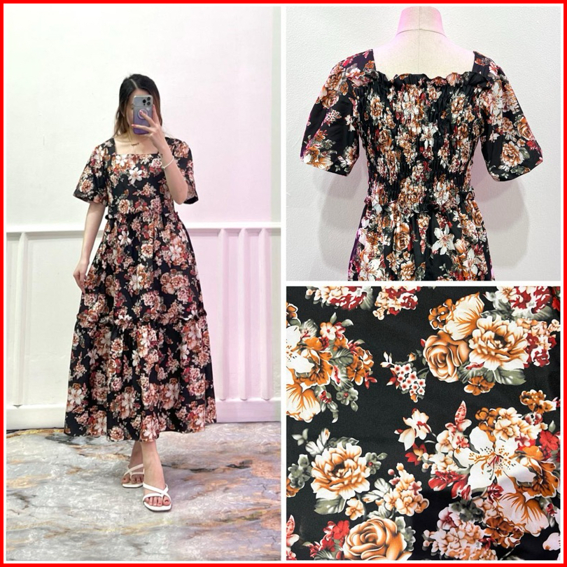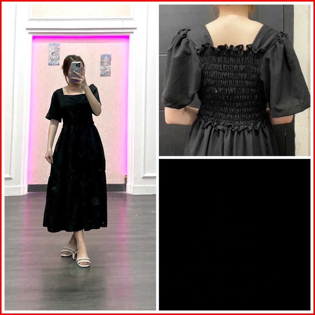 Rd Fashion - Yerika Dress Dress Lengan Pendek Smocked Gaun Musim Panas Kasual Baru Lengan Pendek Smocked Dress Lipit Bun