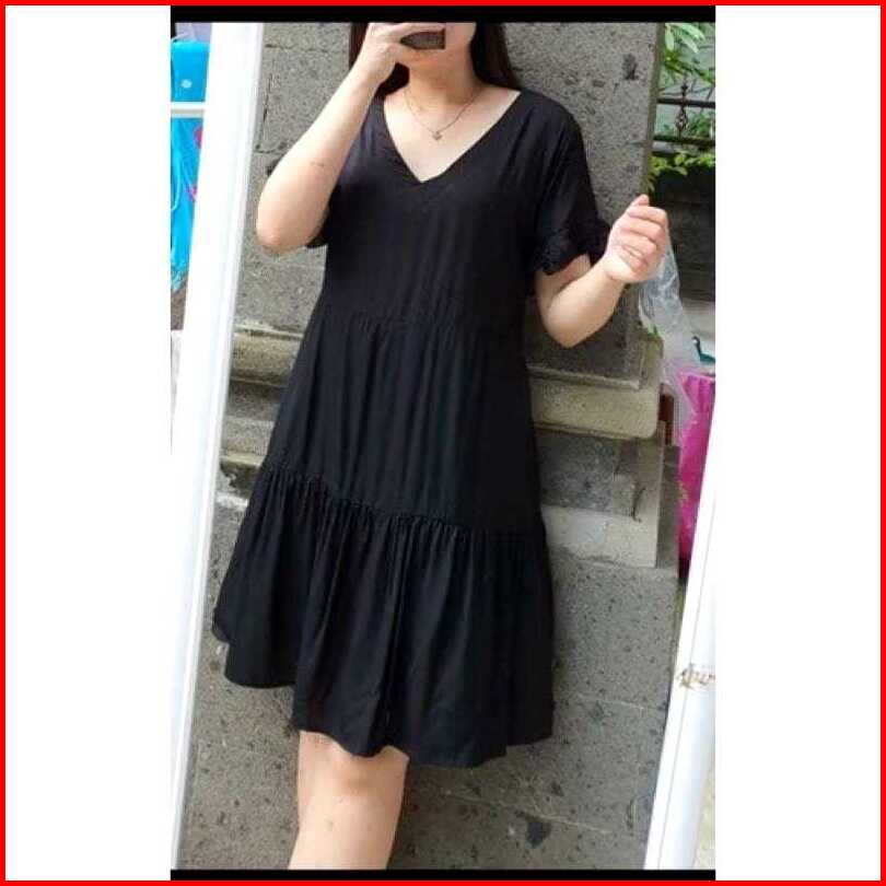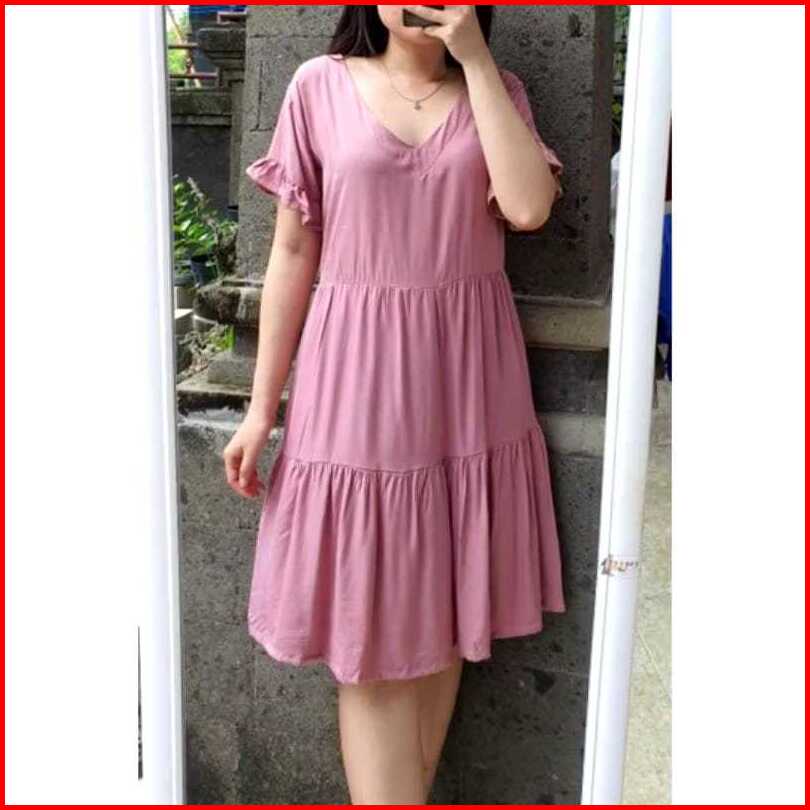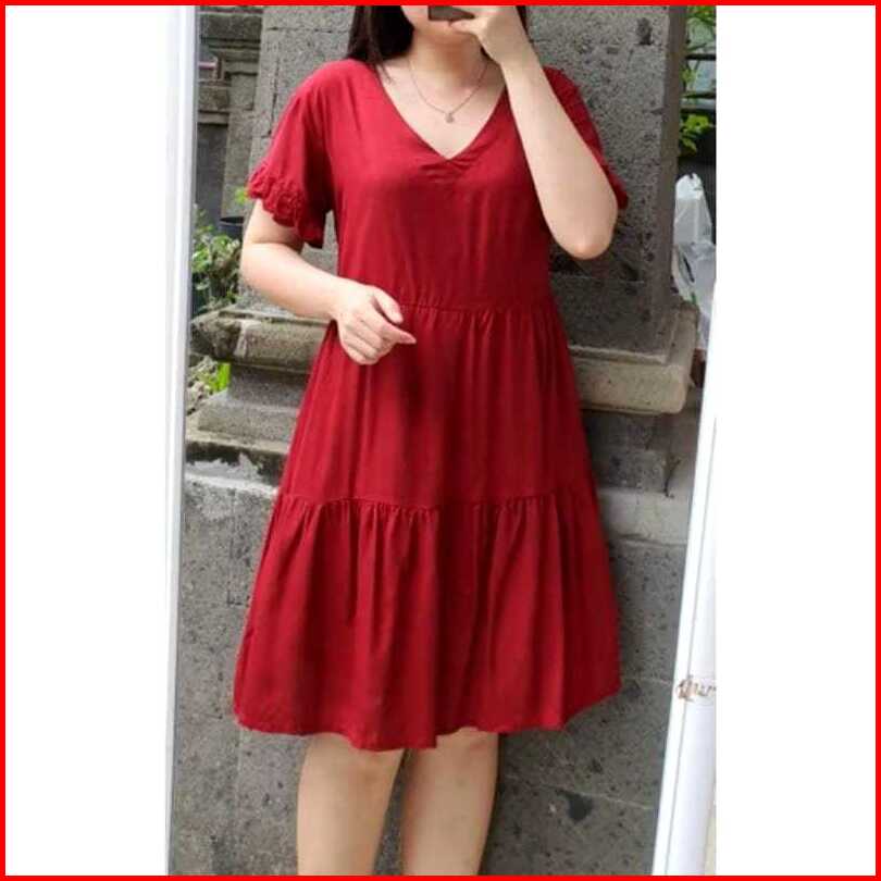 Big Sale... Dress Susun Polos Rempel Wanita Korean Style Rayon Premium Terbaru