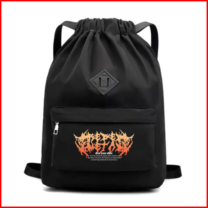 String Bag Tas Serut Anti Air Tas Ransel Olahraga Pria Dan Wanita Bahan Cordura Waterprof Motif Metal