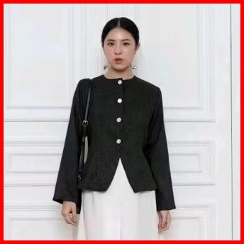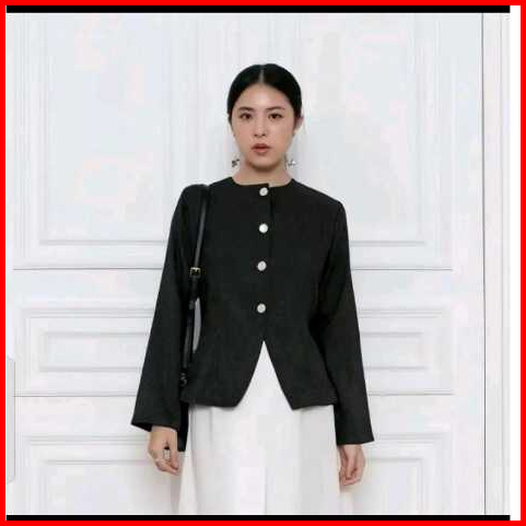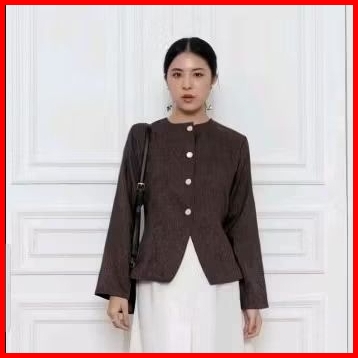 Ailee Top Blazer Jumbo Semi Woll Korean Style Full Kancing Atasan Lengan Panjang Hijab Friendly Blouse Atasan Kekinian