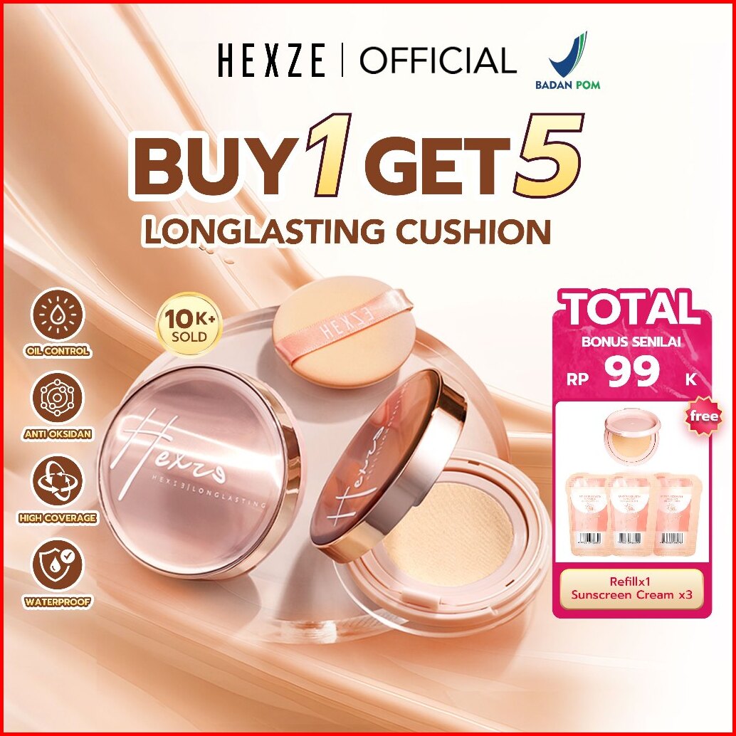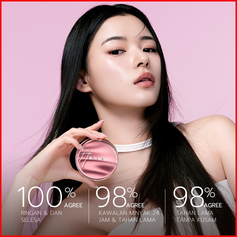 Hexze Soft Glow Cushion Foundation Waterproof Brightening Tahan Lama Antioksidan Flawless Look