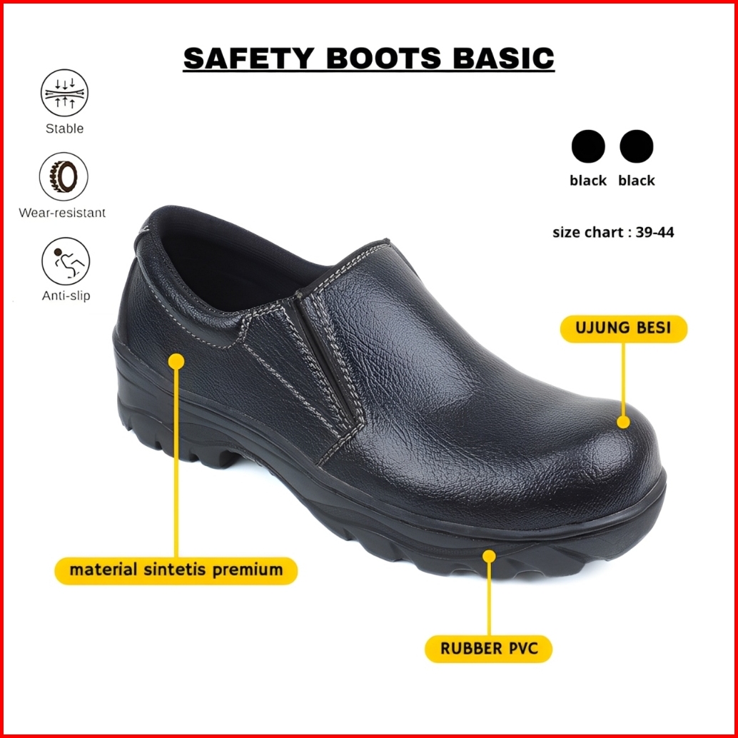 Sepatu Boots Safety Pria Ujung Besi Sepatu Safety Boot Basic Premium Kerja Proyek Terlaris