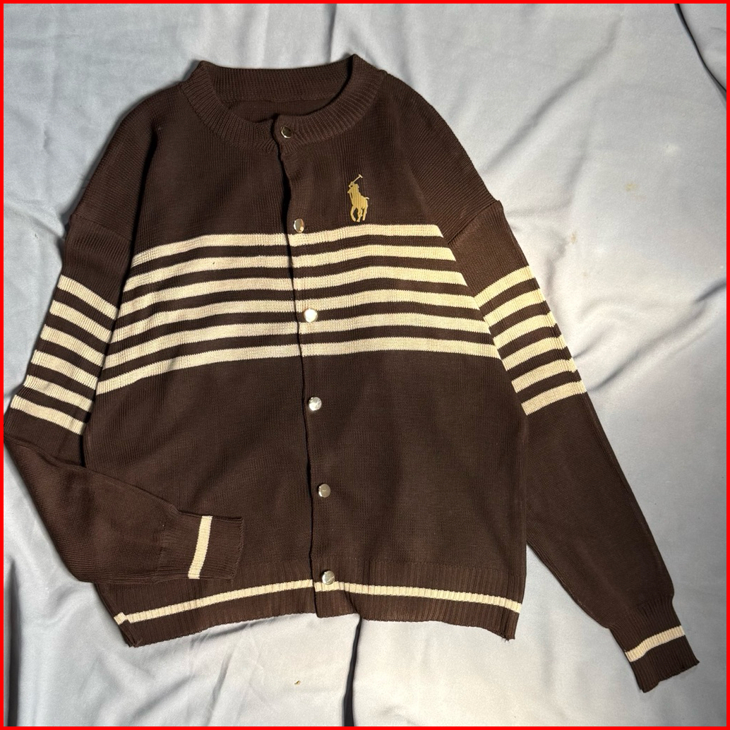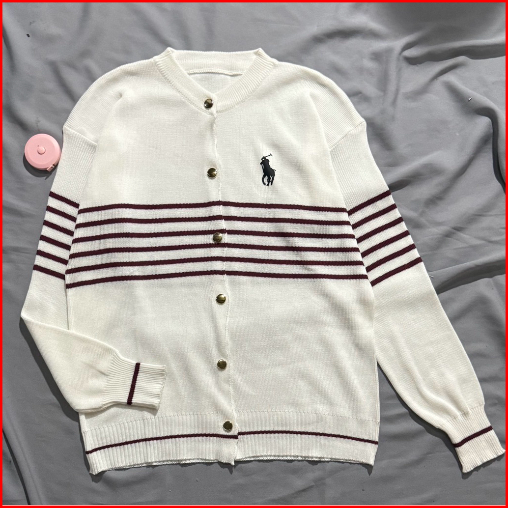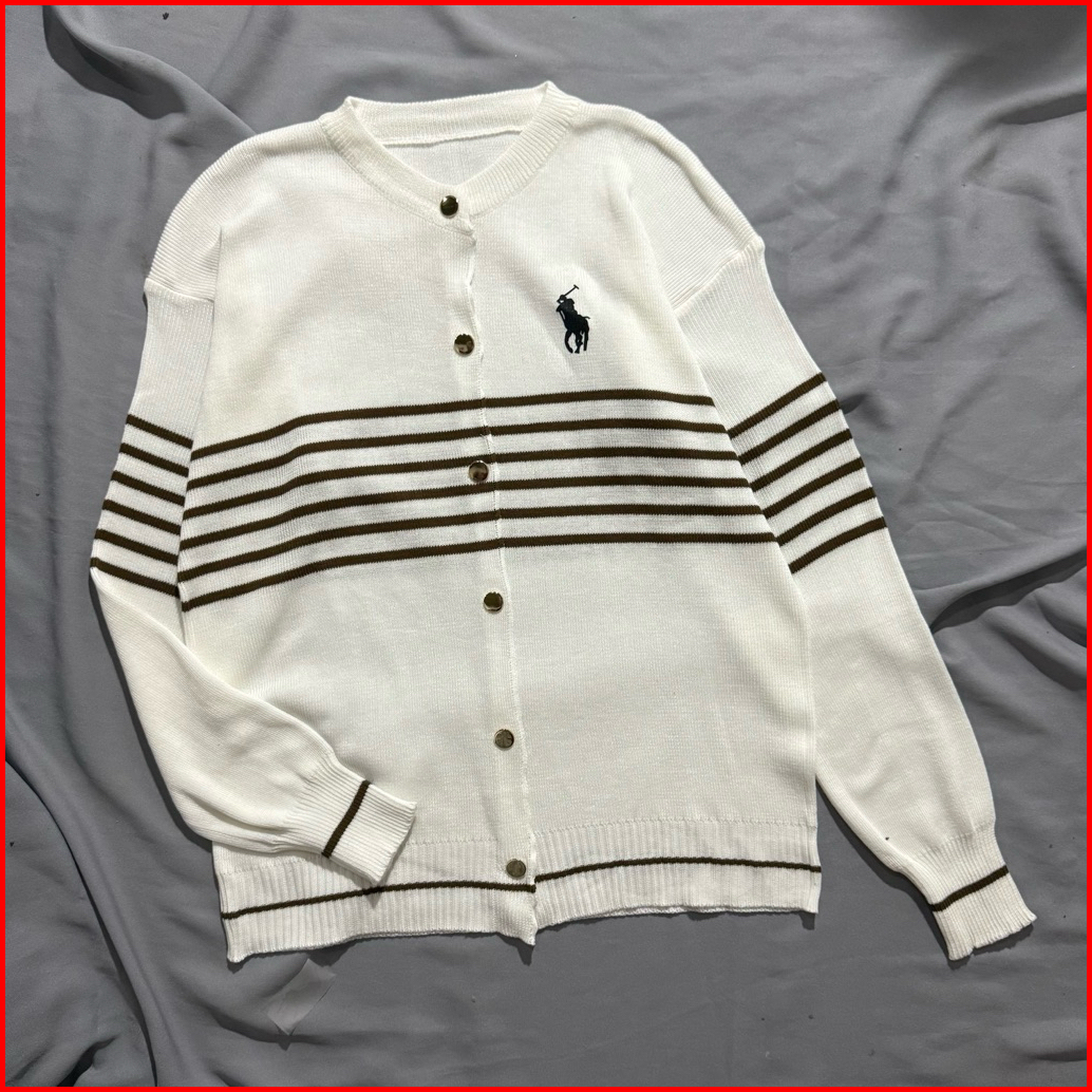 Belinda Cardigan Olop Salur - Polo Cardigan Rajut Bergaris Premium