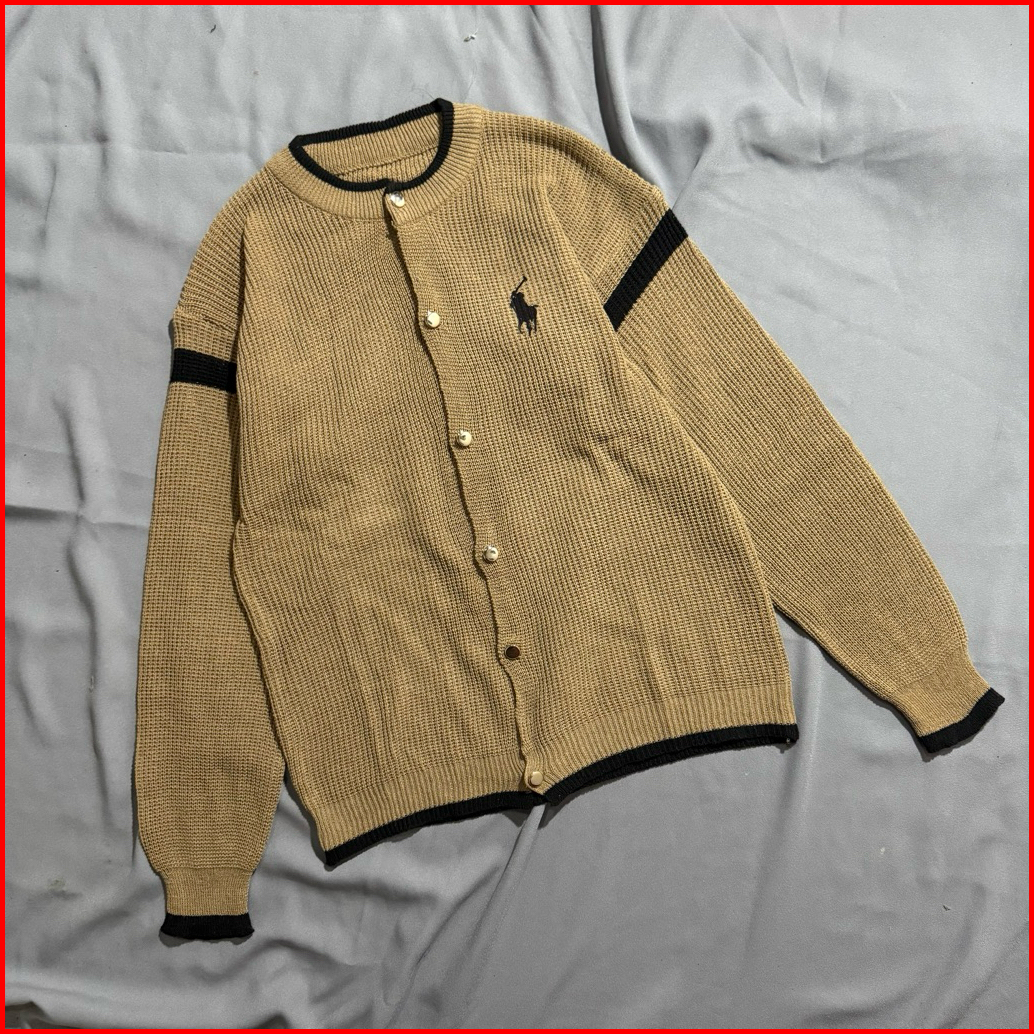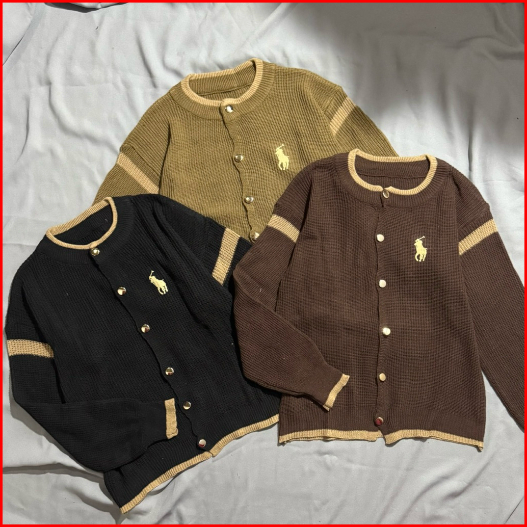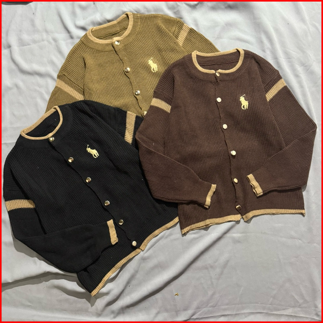 Bella Horse Cardigan Rajut Polo Polos Kancing Motif Horse Wanita Korea