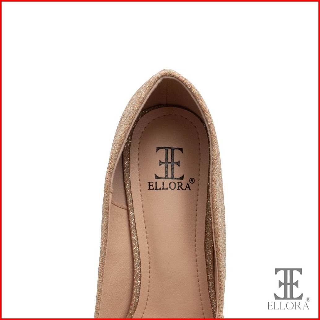 Ellora Em-8646 Sepatu Heels Pesta Wanita Bahan Kanvas Glitter Import 8cm