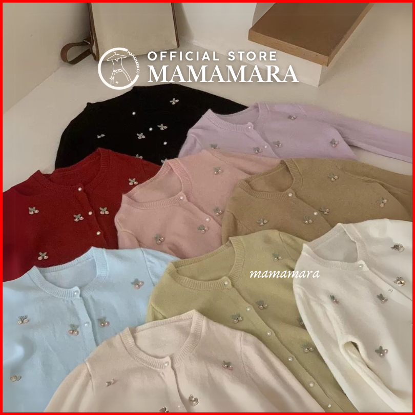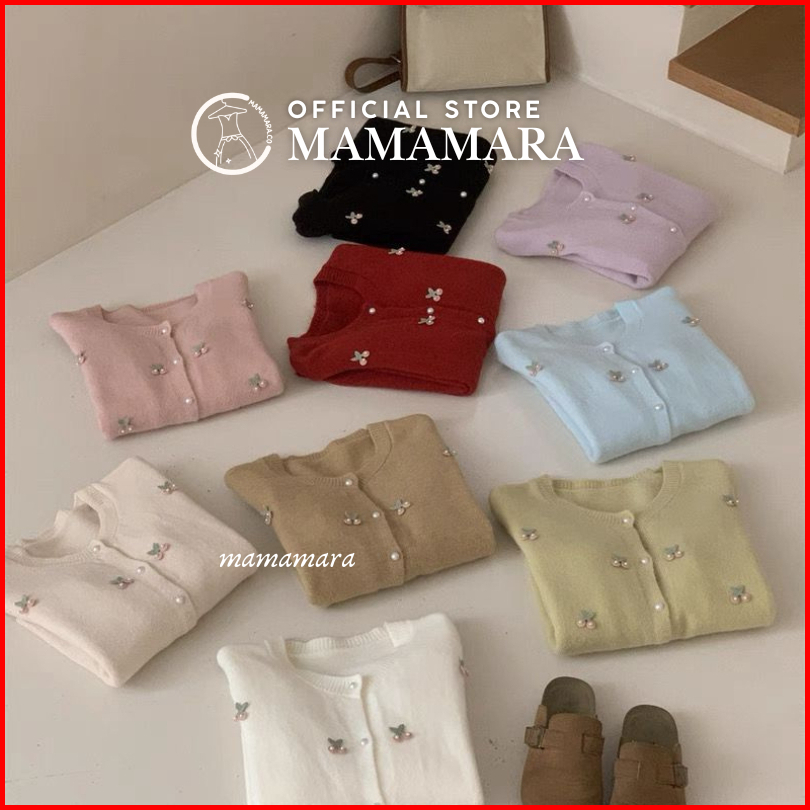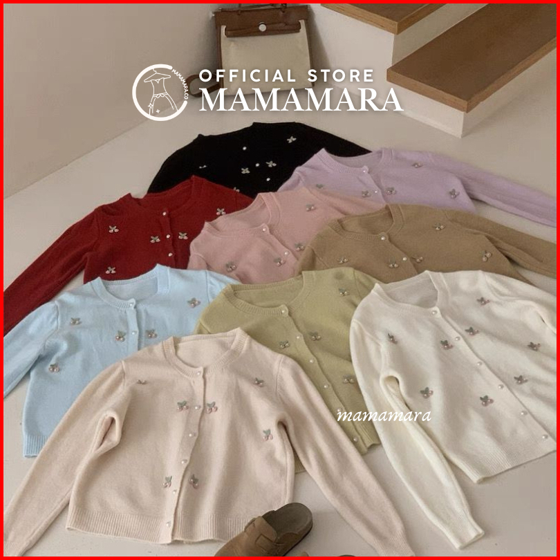 Mamamara - Cardigan Rajut Wol Atasan Wanita Motif Cherry Imut Manis Girly Outer Simple