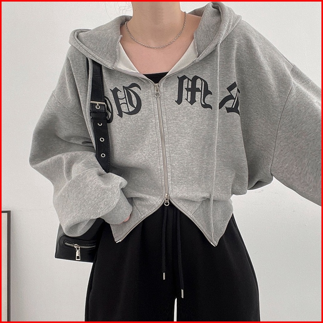 Double Ziper Hoodie Japanese Semi Croope - Jaket Semi Crop Wanita Korean Style