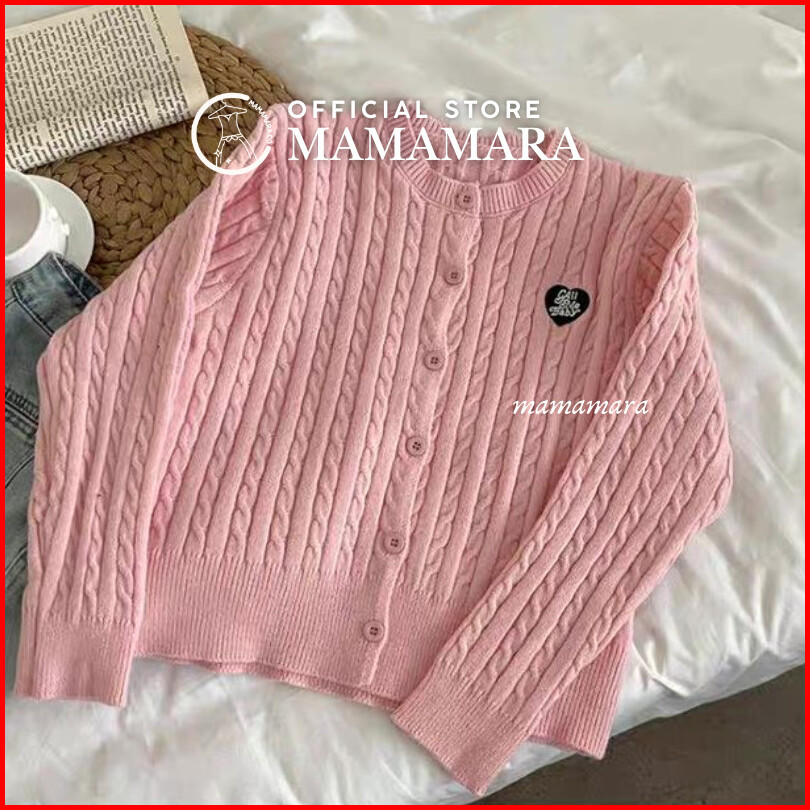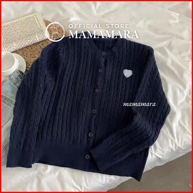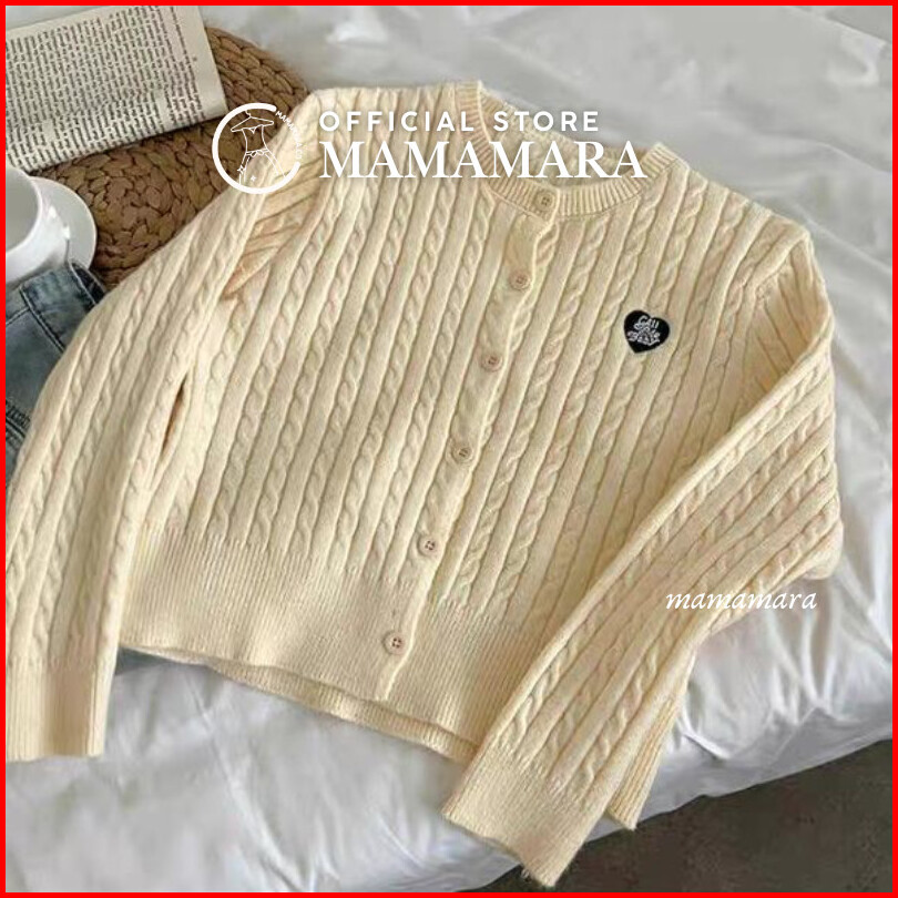 Mamamara - Cardigan Rajut Cable Knit Patch Love Simple Daily
