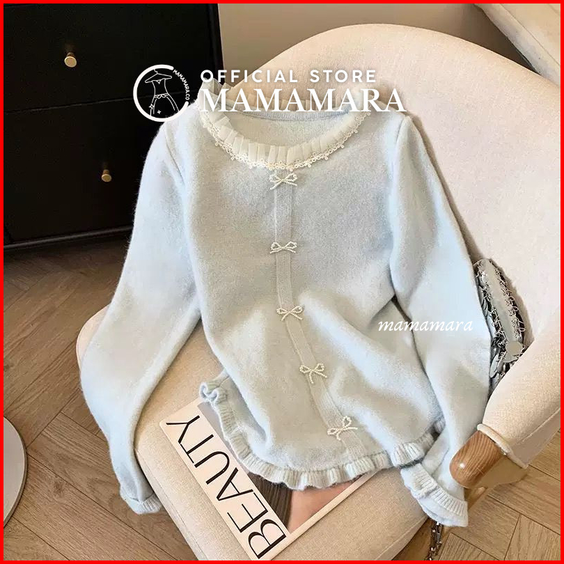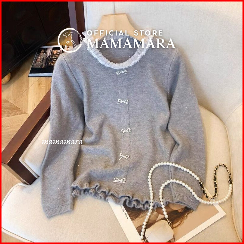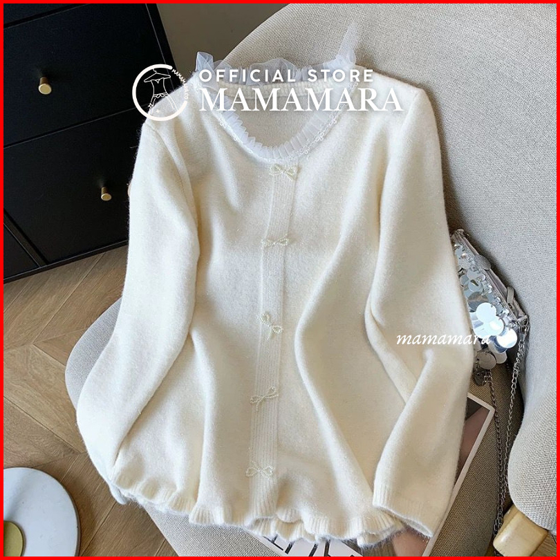 Mamamara - Atasan Rajut Blouse Lembut Pita Coquette Imut Knitwear Simple