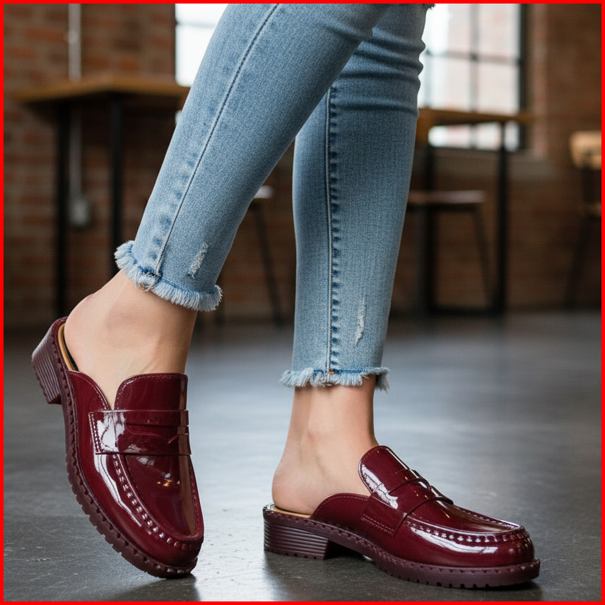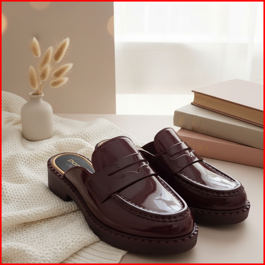Porto Pearce - Sepatu Hells Nyaman Anti Slip Sepatu Wanita Sepatu Kantor Glossy Cherry Red Chocolate