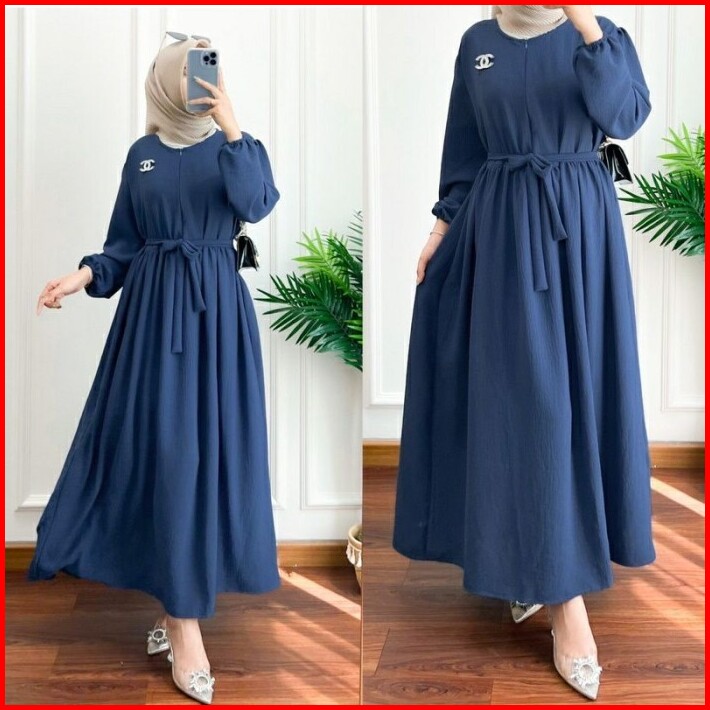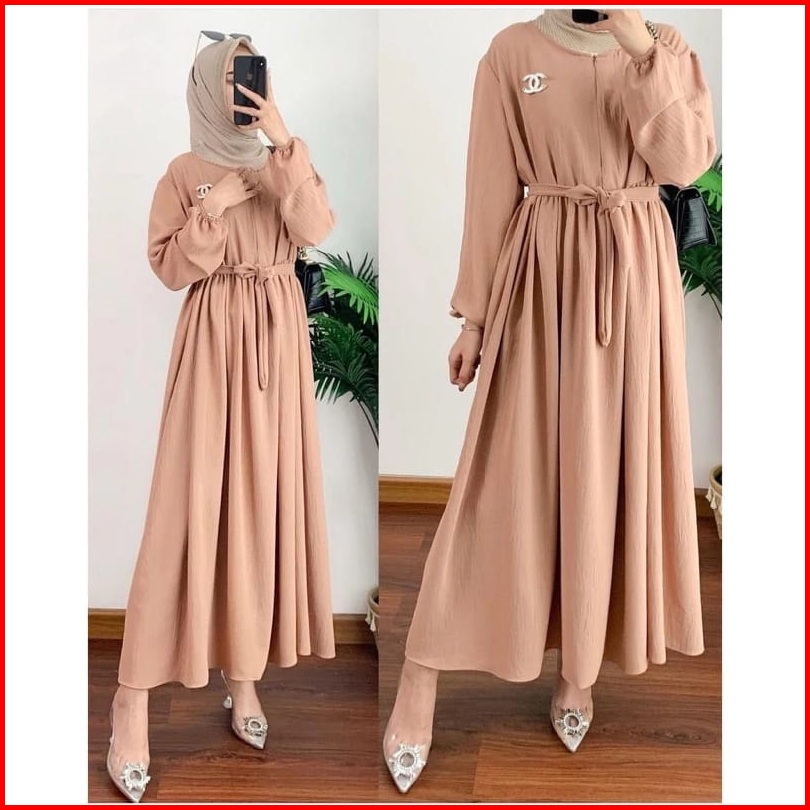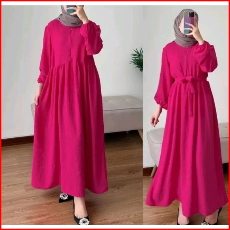 Midi Dress Crinkle Wanita Muslim Terlaris Adem Nyaman