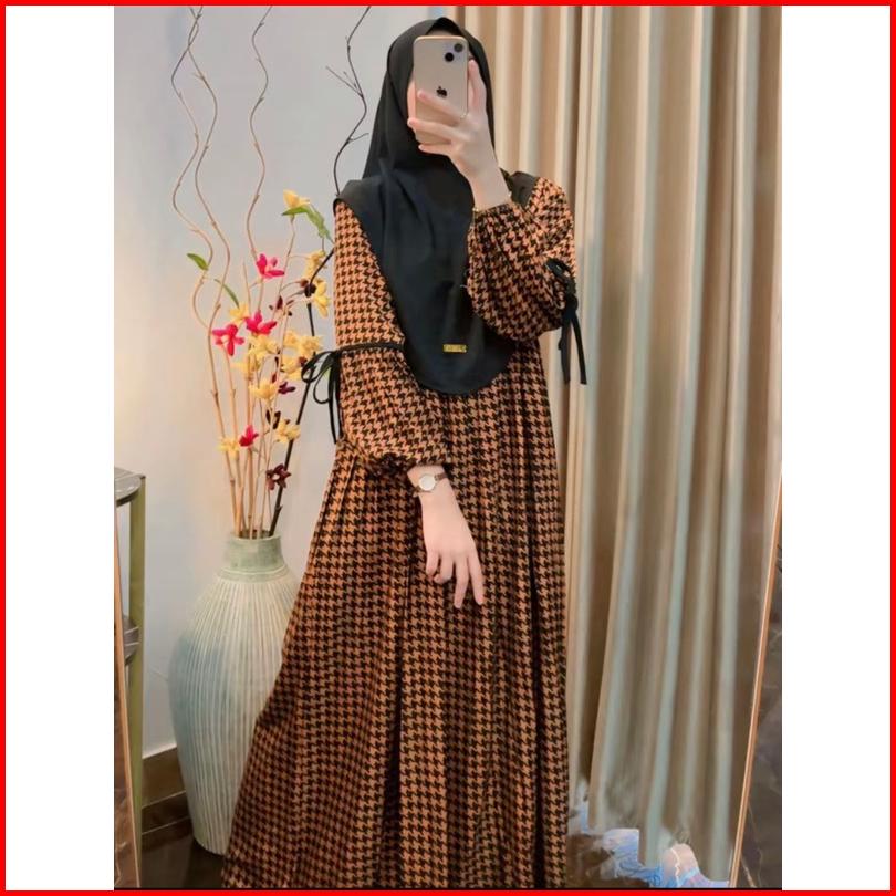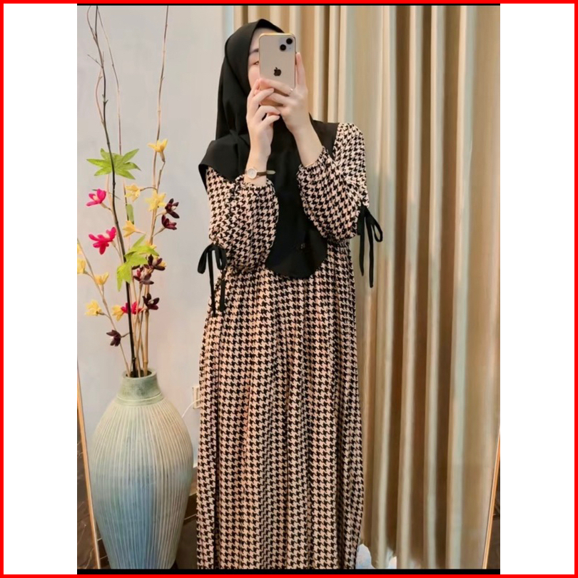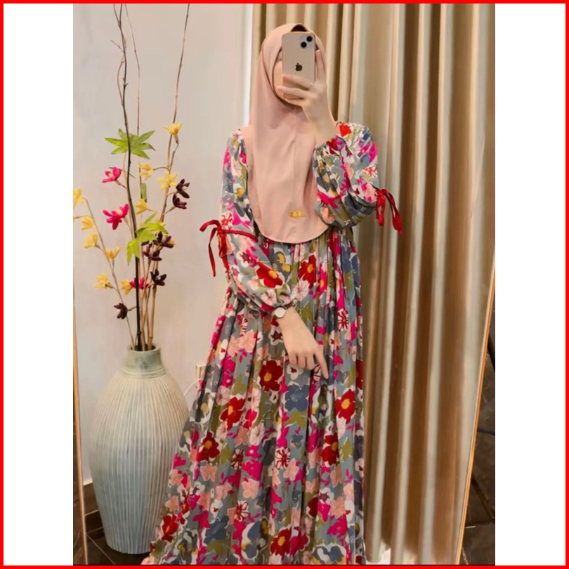 Branda Busana Wanita Dress Anjani Tangan Pita Terbaru Midi Dress Rayon Motif Premium Elegan