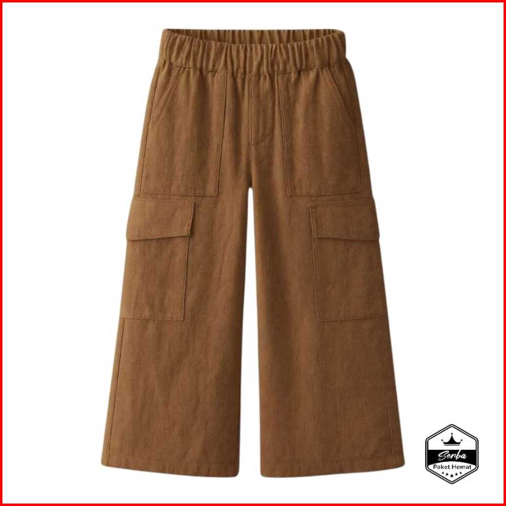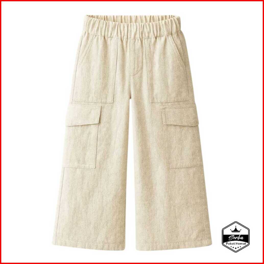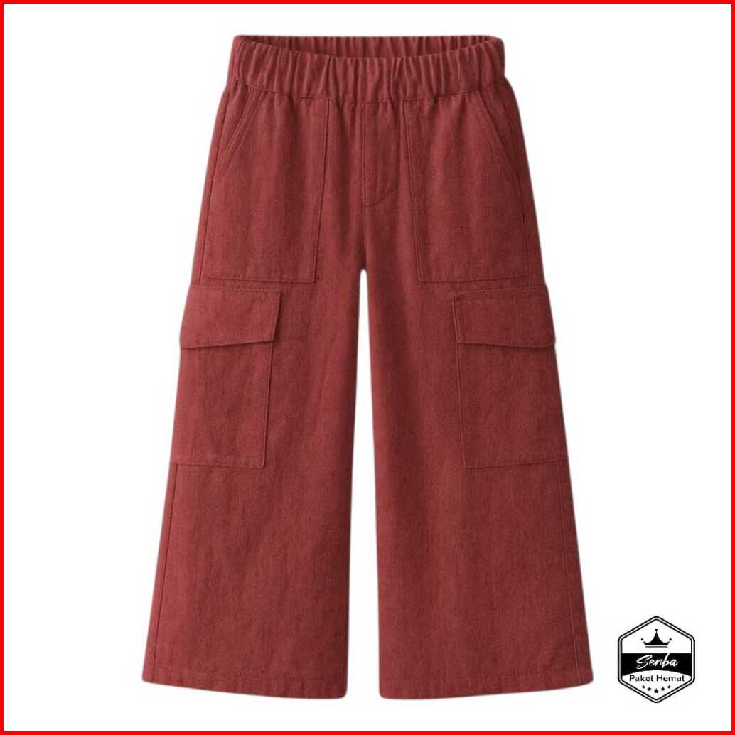 Paket Hemat 3 Pcs Kulot Cargo Anak Perempuan Katun Rami Linen 4 Kantong Celana Kulot Anak Cewek Paket Bundle Hemat Warn