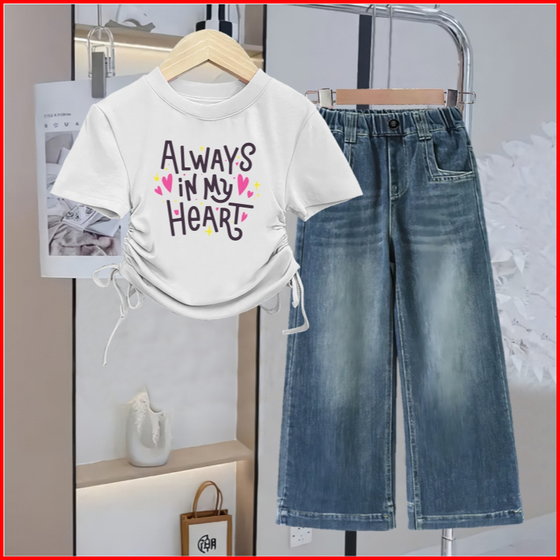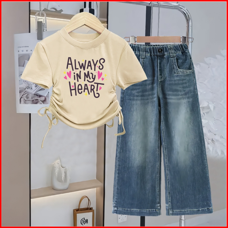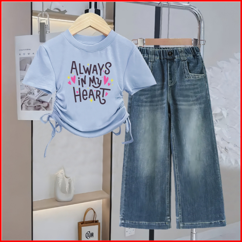Baju Setelan Anak Perempuan Croptop Anak Cewe Celana Kulot Jeans Anak Cewe Usia 1 - 12 Tahun