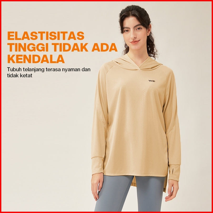 Wizi Atasan Olahraga Wanita Lengan Panjang Baju Gym Kaos Sport Hoodie Longgar Bernapas