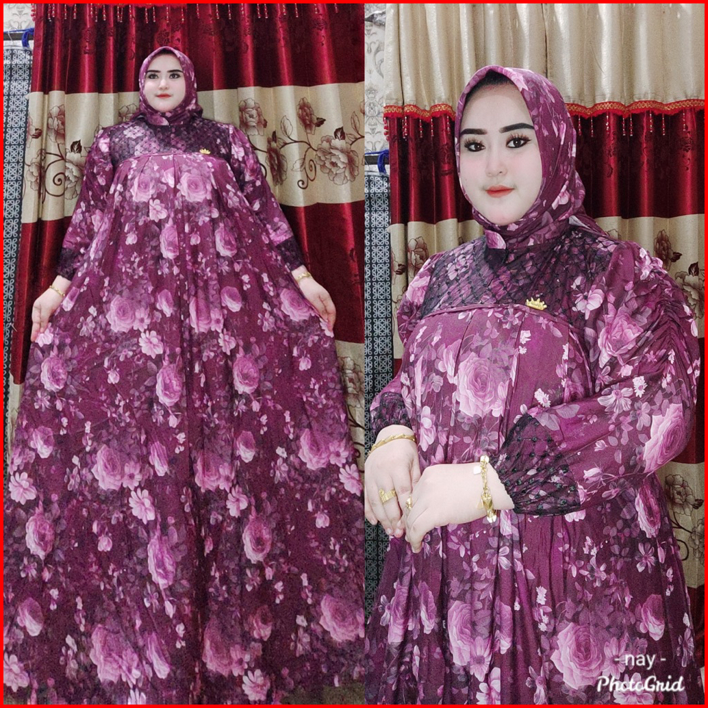 Gamis Cintya Set Hijab Rayon Kombi Tile Ld 110-130