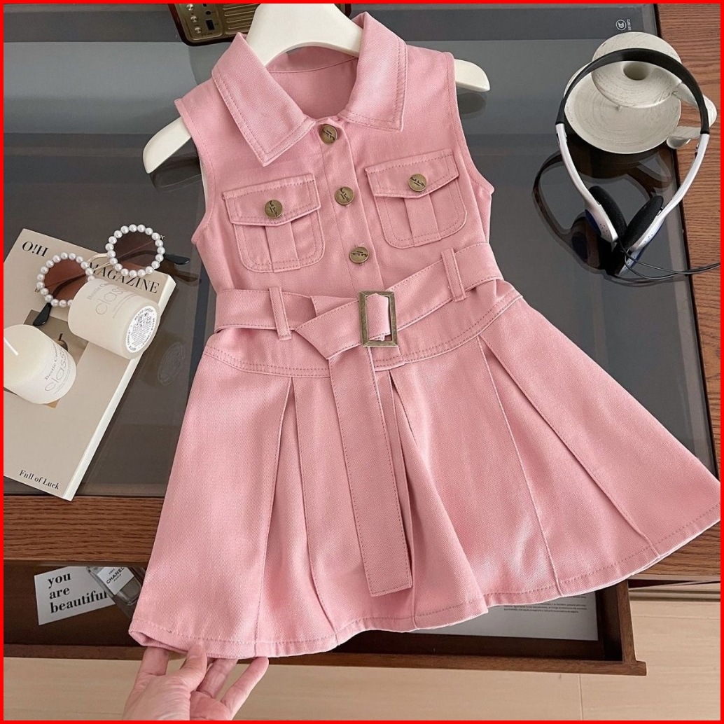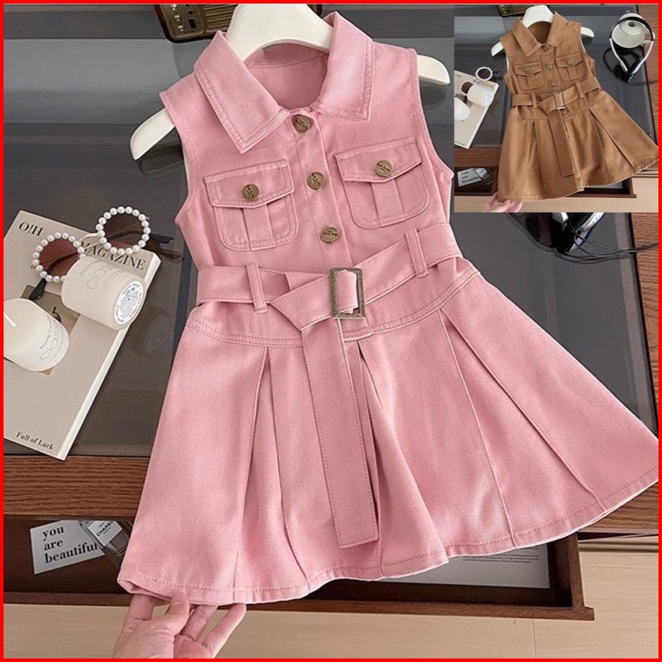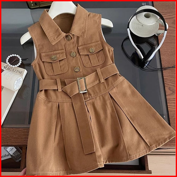 2-9 Tahun Gaun Anak Perempuan Gaun Tank Tanpa Lengan Fashion Retro Anak Perempuan