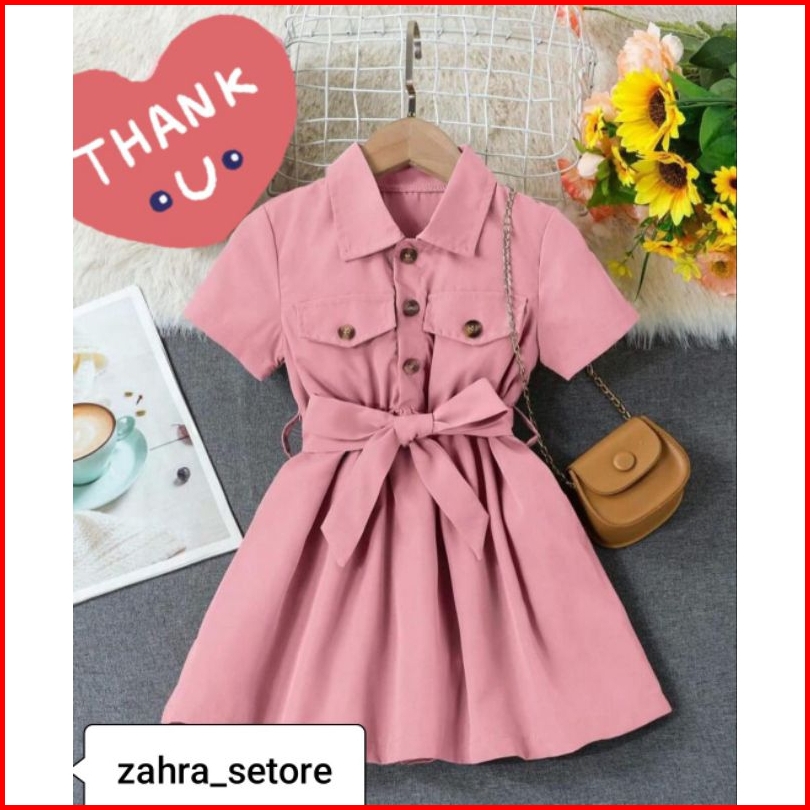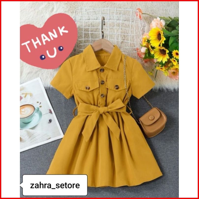 Tasya Deres Baju Anak Viral Midi Deres Usia 1-12 Thn Tangan Pendek Ikat Pinggang2