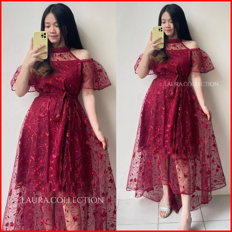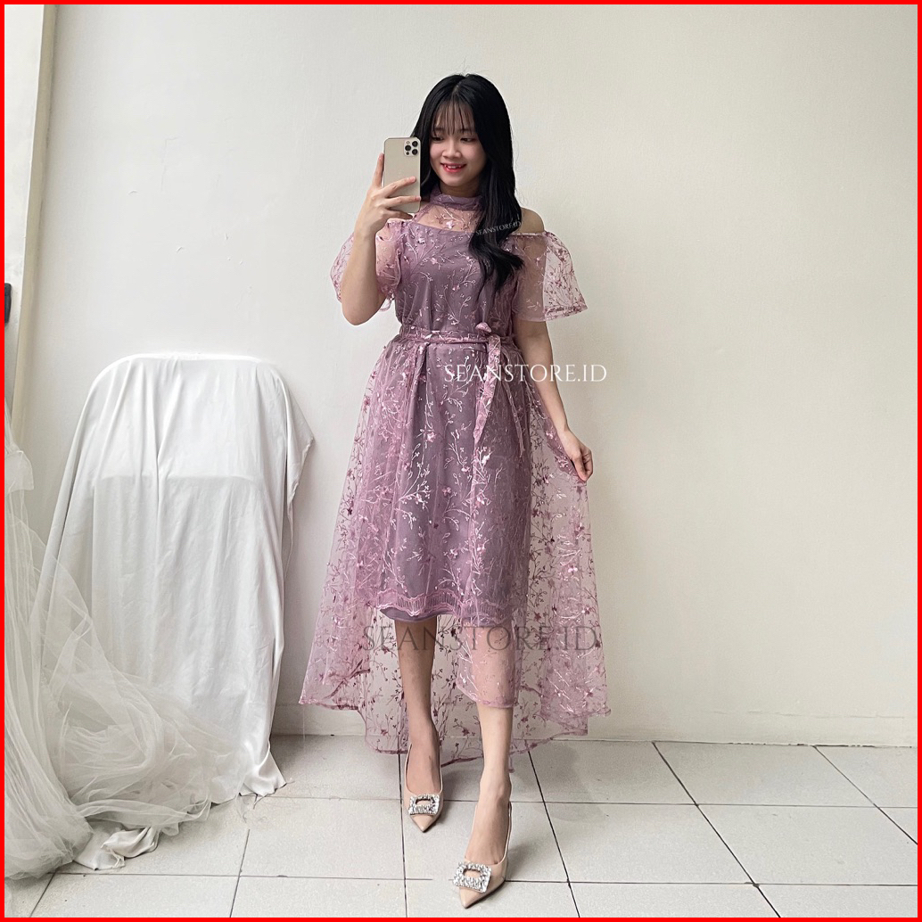 Glowy Dress Sabrina Wanita Elegant Anggun Dress Bridesmaid Prewedding Pesta Kondangan Imlek Dress Gereja Natal Terbaru