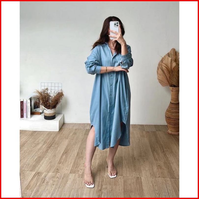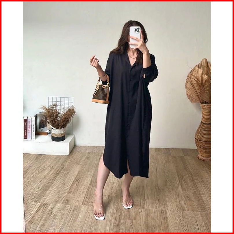 Oversize Long Dress - Kemeja Wanita Cotton Linen