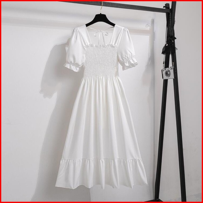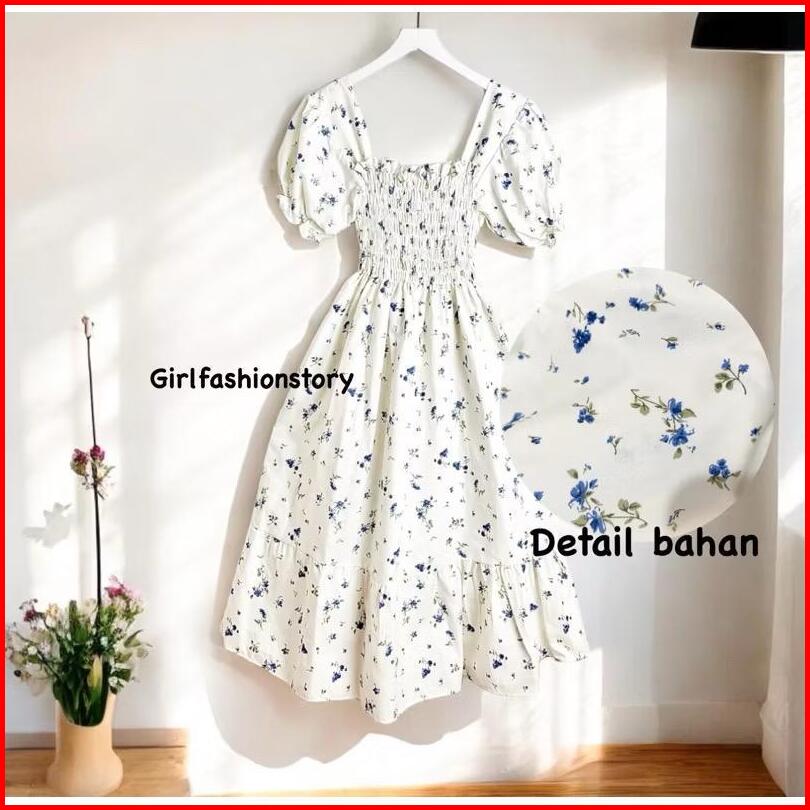 Smocked Dress Gaun Musim Panas Kasual Baru Lengan Pendek Smocked Dress Lipit Bunga Dengan Dasi Belakang