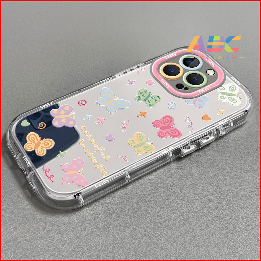 Case Untuk Iphone15 Pro Max Plus 12 13pro 14 11 Plus 6 7 8 6 7 8 Xs Max Casing Ponsel Anti Jatuh Kupu-kupu Kartun Sederh