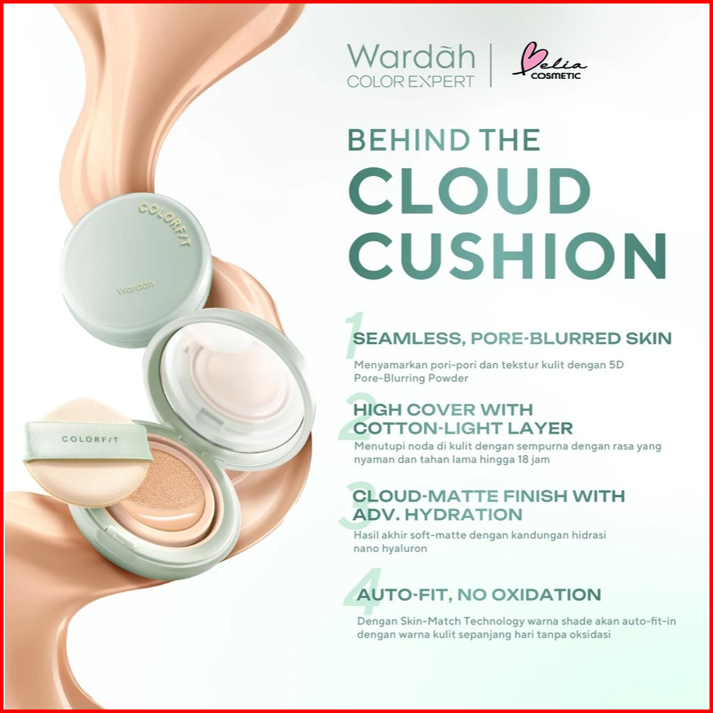 Belia Wardah Colorfit 5d Blur Cloud Cushion Matte Finish Spf 50 Pa Nano-hyaluron Dan Cica