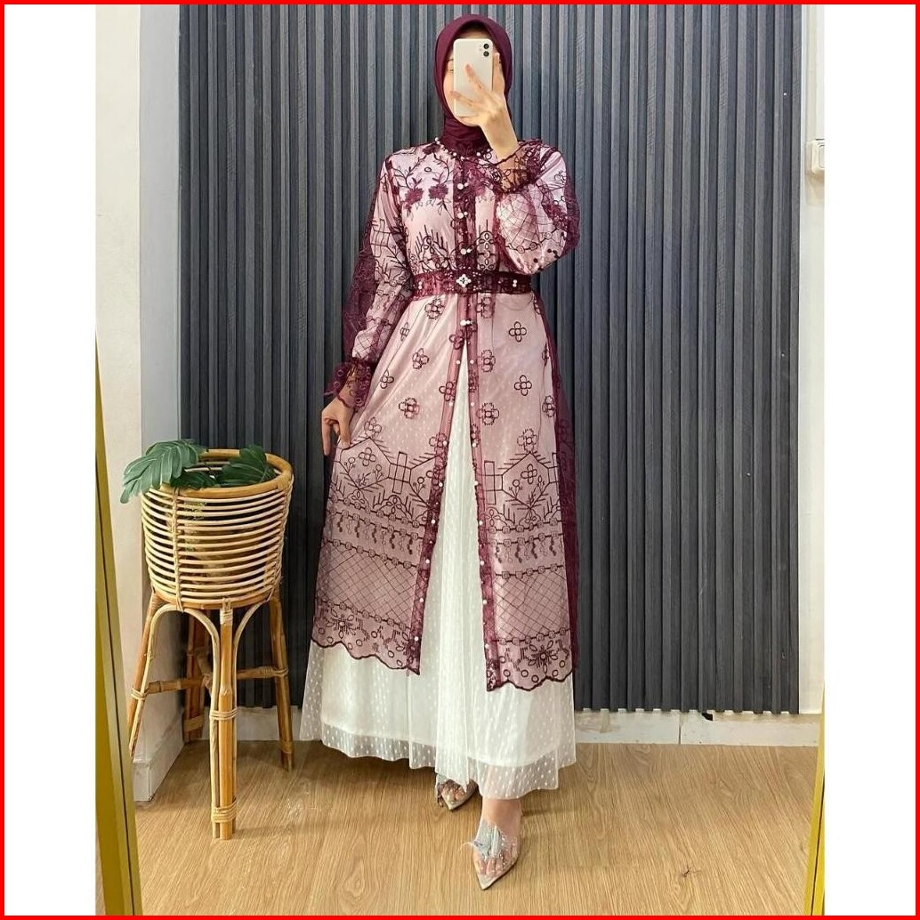 Azzura Outer Tunik Wanita Cardigan Brokat Brukat Kondangan Wisuda Mewah Kekinian Lengan Panjang