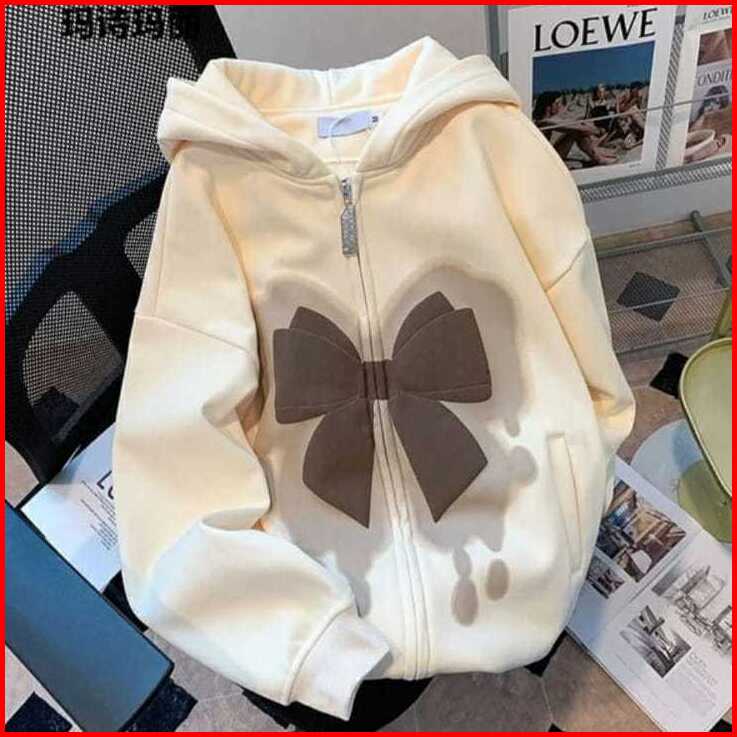 Dinafshn - Jaket Ribbon Saramatine Hoodie Zipper Pita Outerwear Wanita Korean Style Premium
