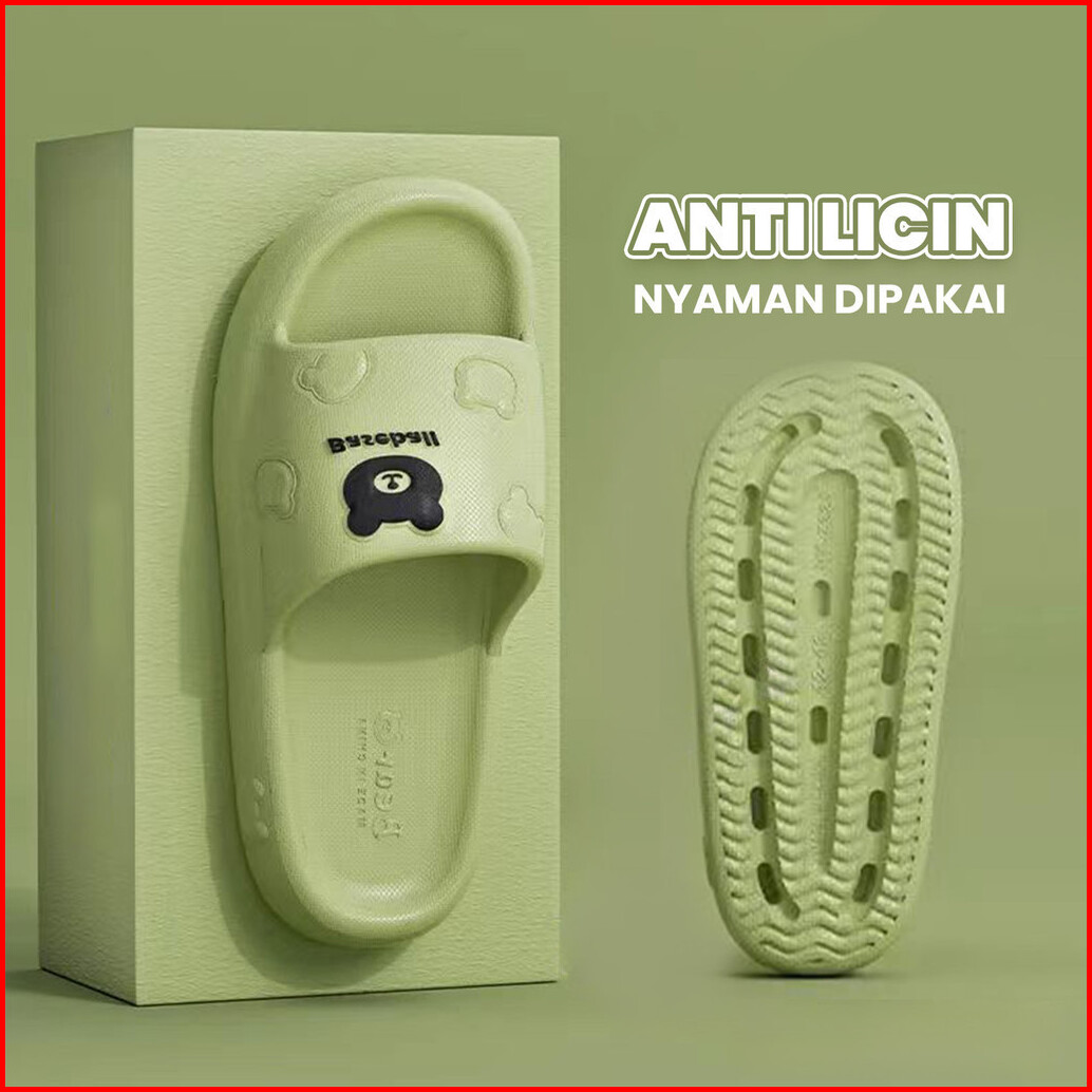 Lazy Bear Sandal Slip On Pria Wanita H48a Sendal Rumah Santai Sandal Beruang Slip On Karet