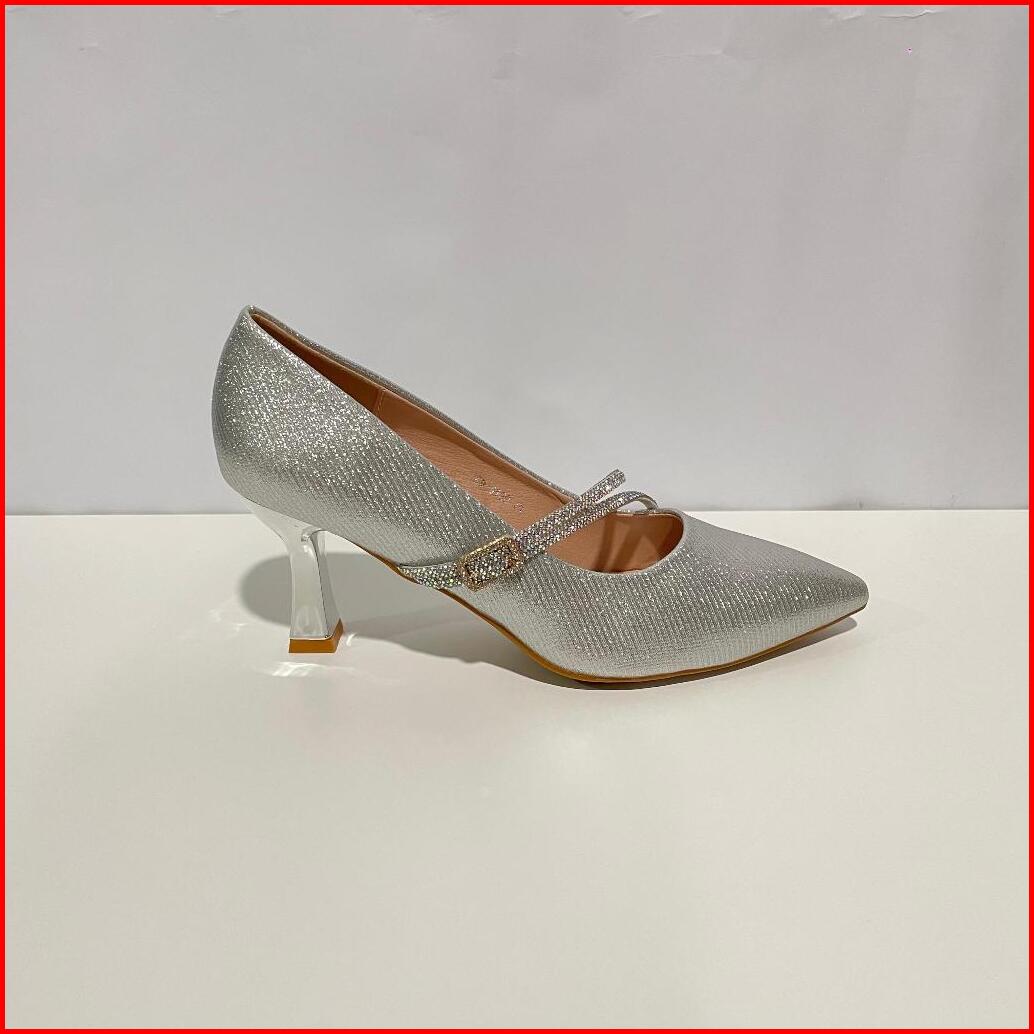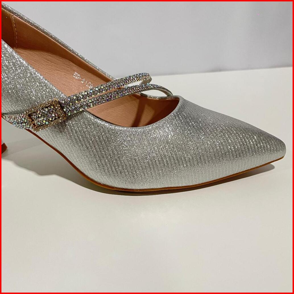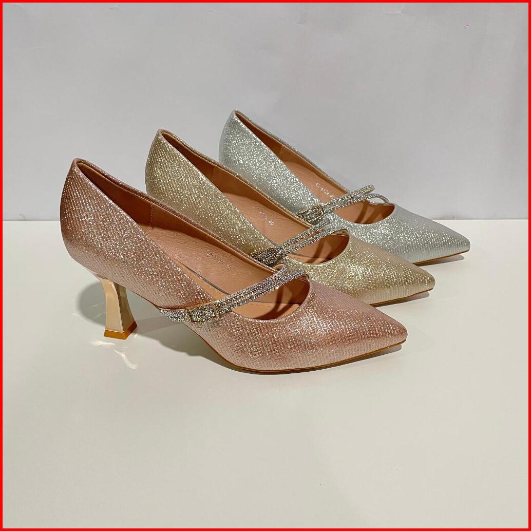 Ellora Ed-8129 Sepatu Heels Pesta Wanita Import Bahan Kanvas Glitter 8cm