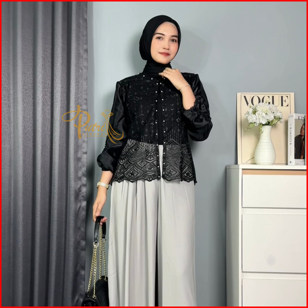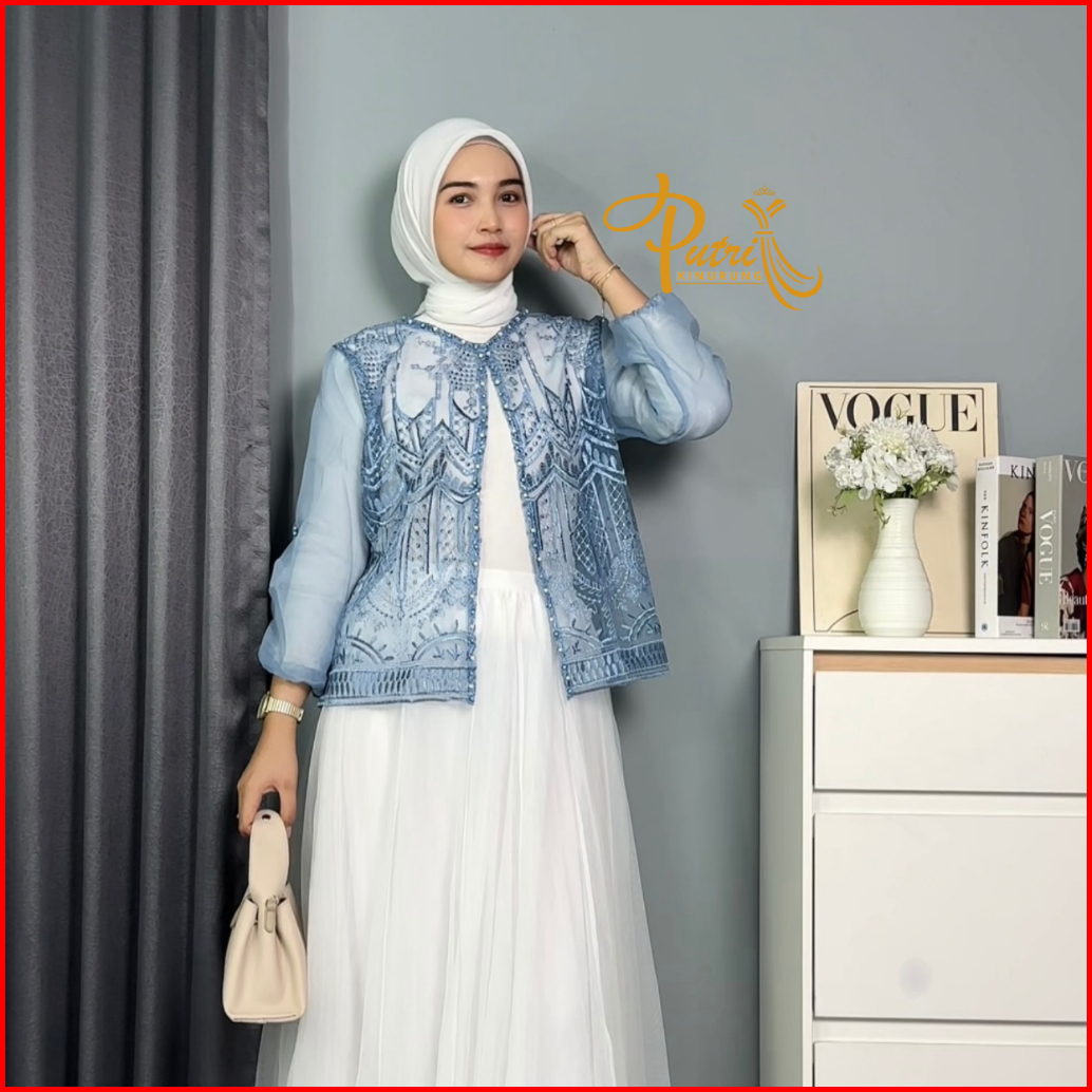 Outer Brokat Crop Brukat Sapto Organza Kondangan Lebaran Wisuda Kekinian Mewah Bordir Bunga Premium