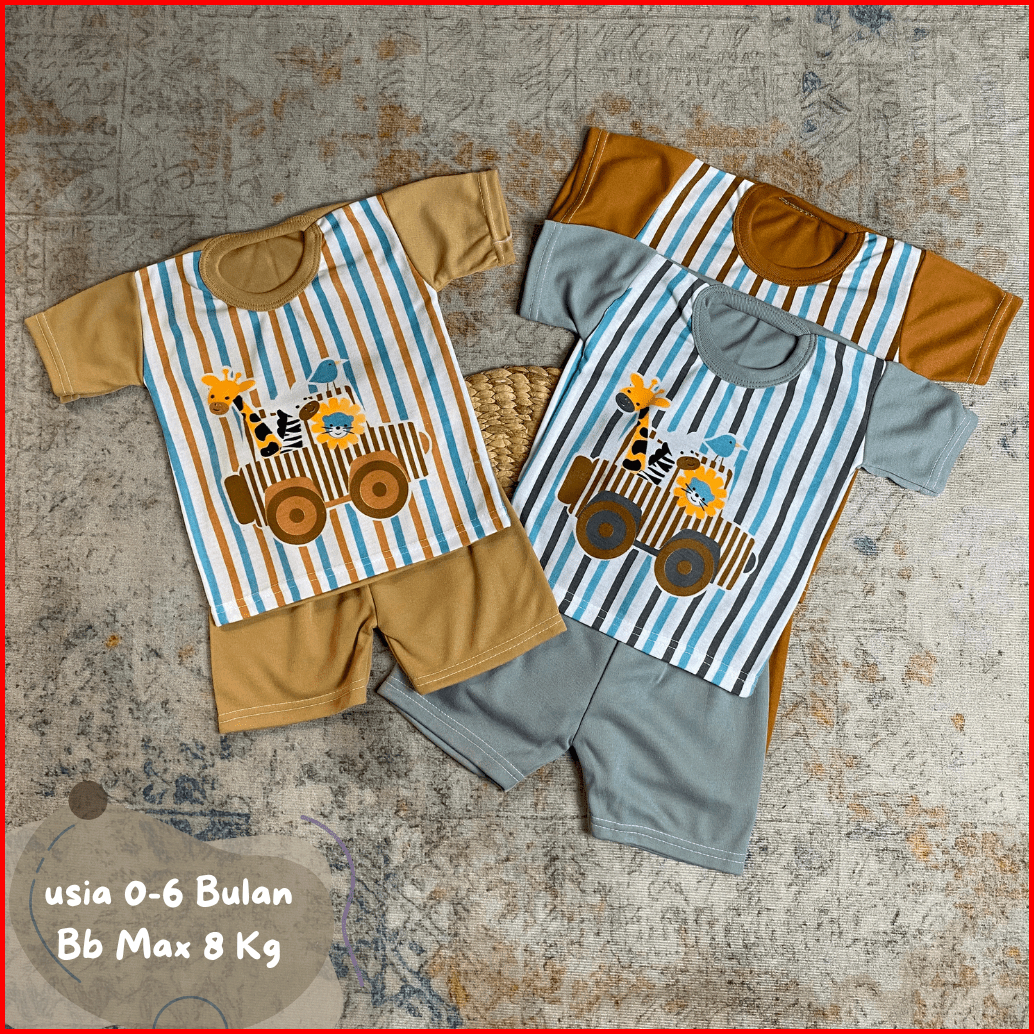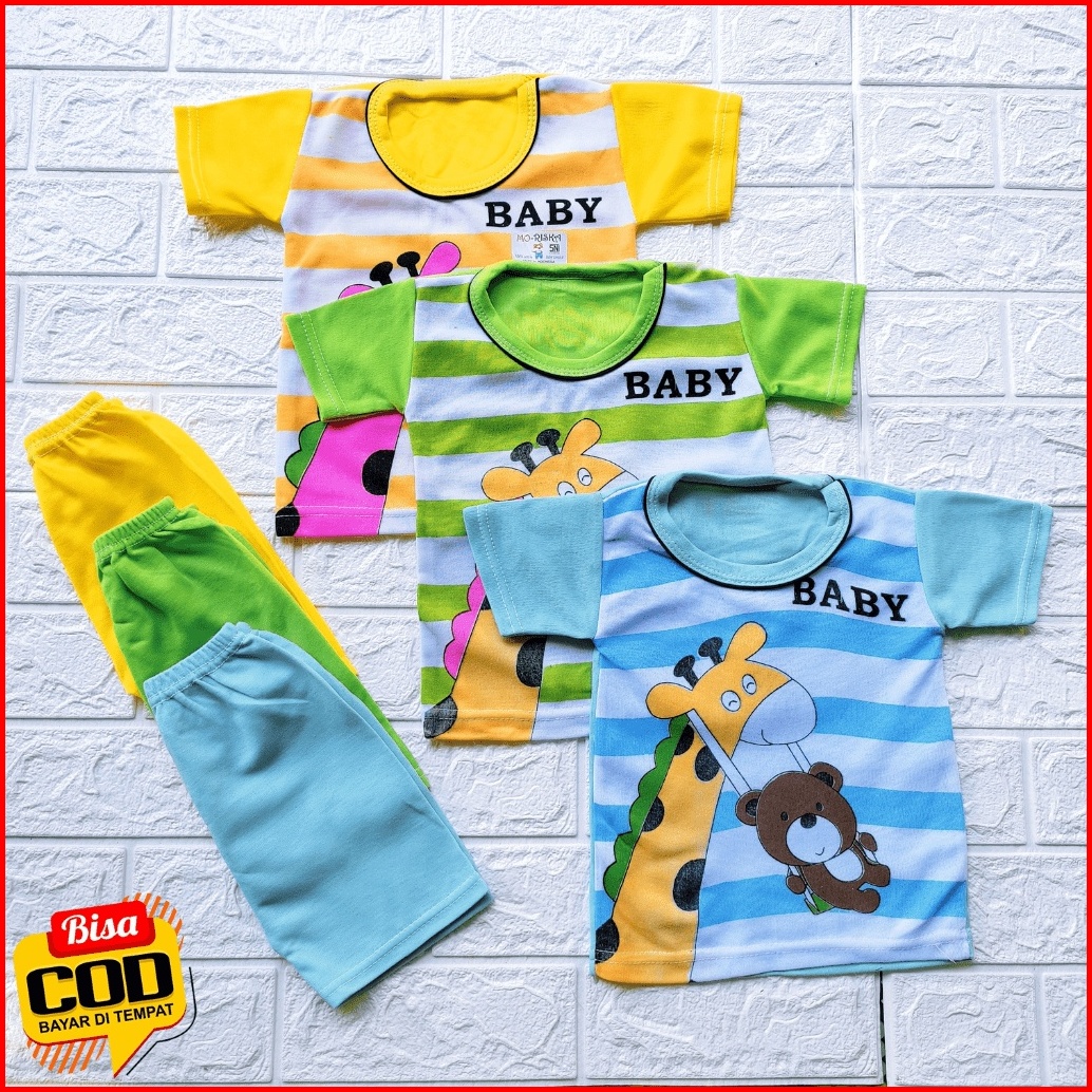 Promo.... 3 Pasang Baju Bayi Lengan Pendek Dan Celana Pendek Bayi Oblong Baju Bayi Setelan Motip Jerapah Special Quality