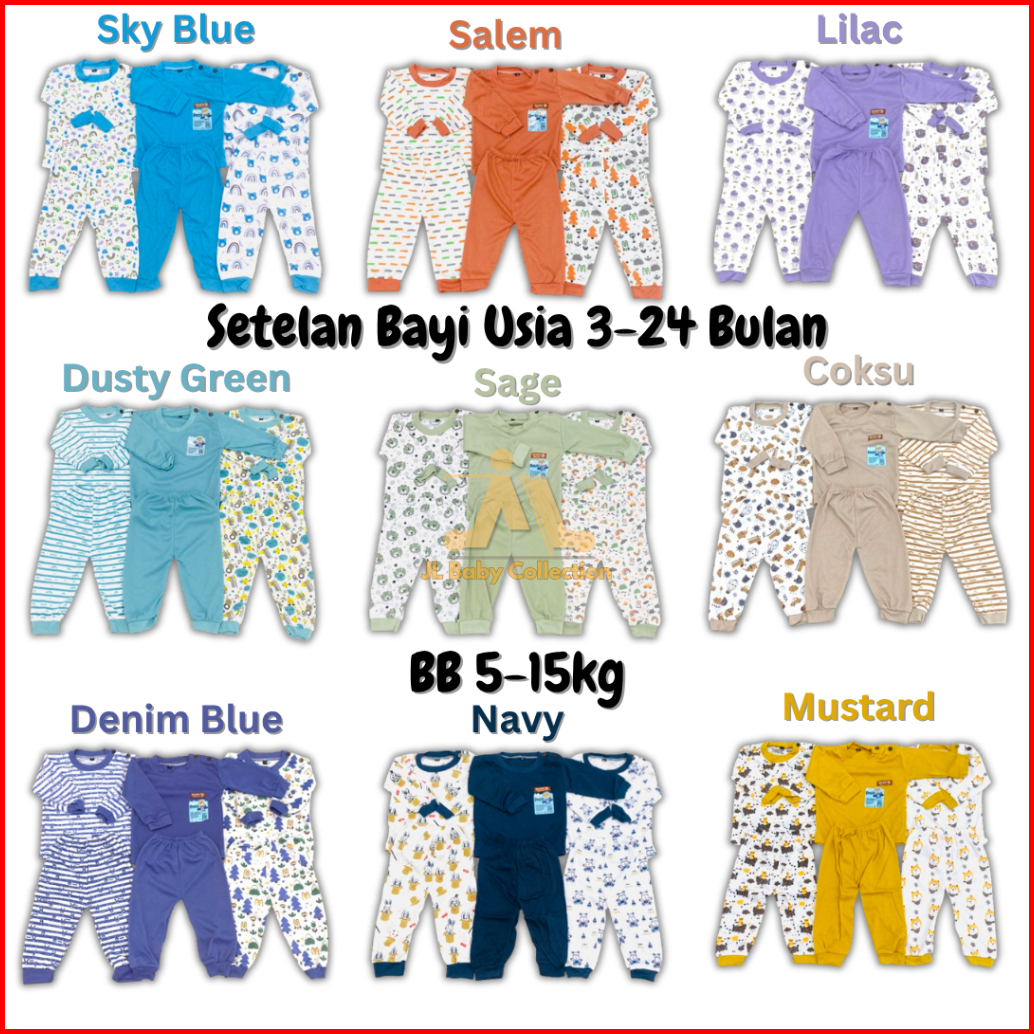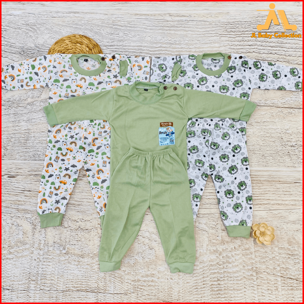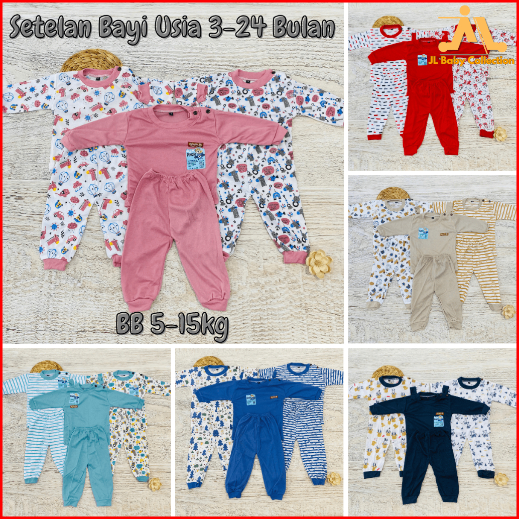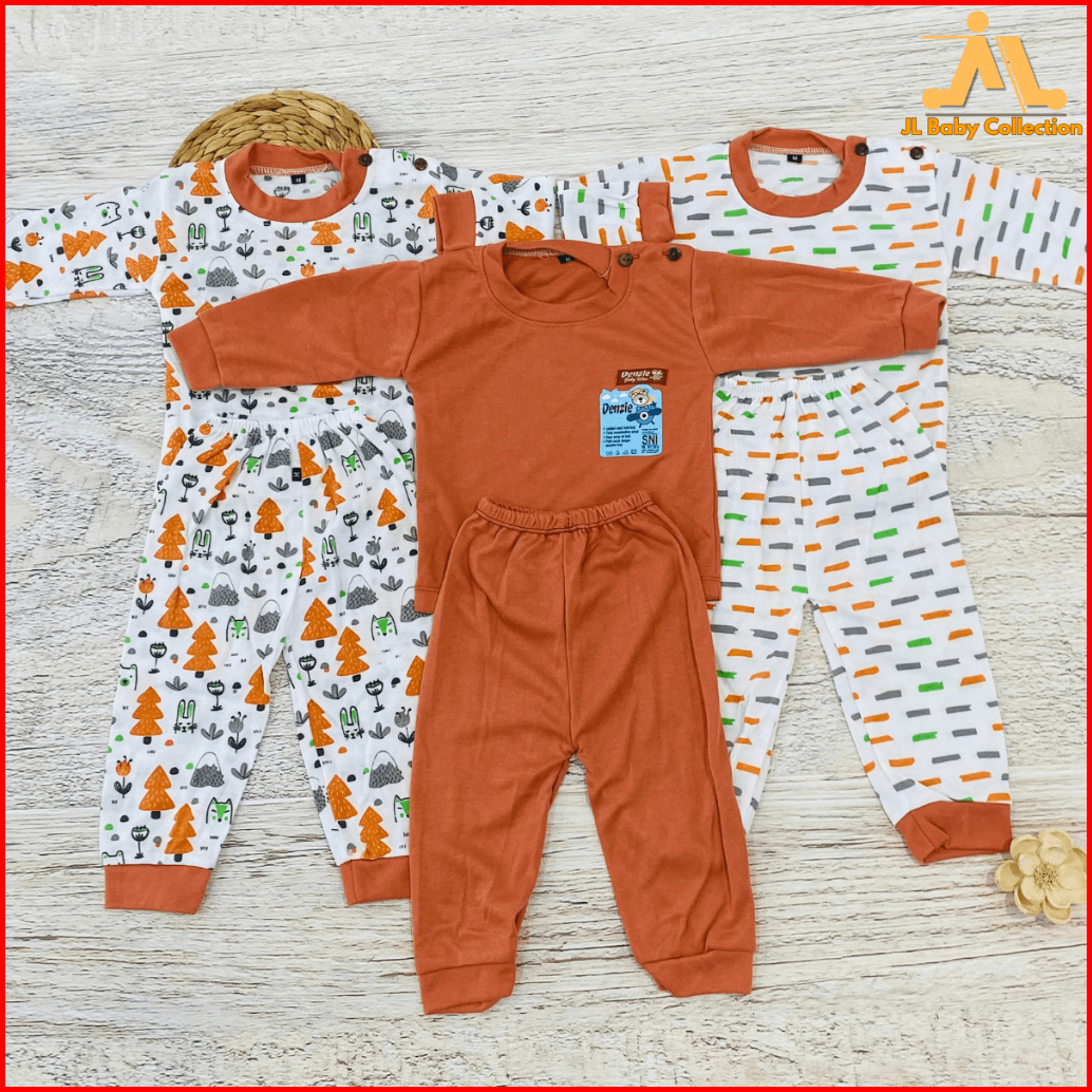 Jl Baby Paket 3 Setelan Baju Bayi 3-24 Bulan Sni M L Xl Lengan Panjang Unisex Piyama Kancing Bahu