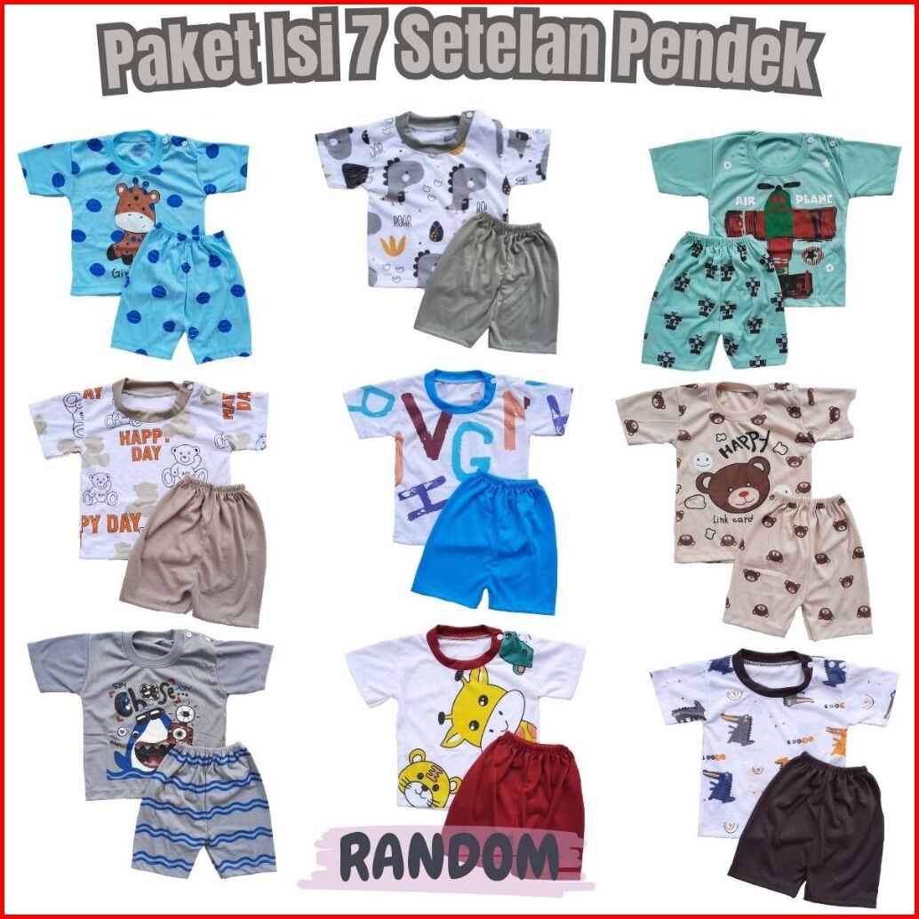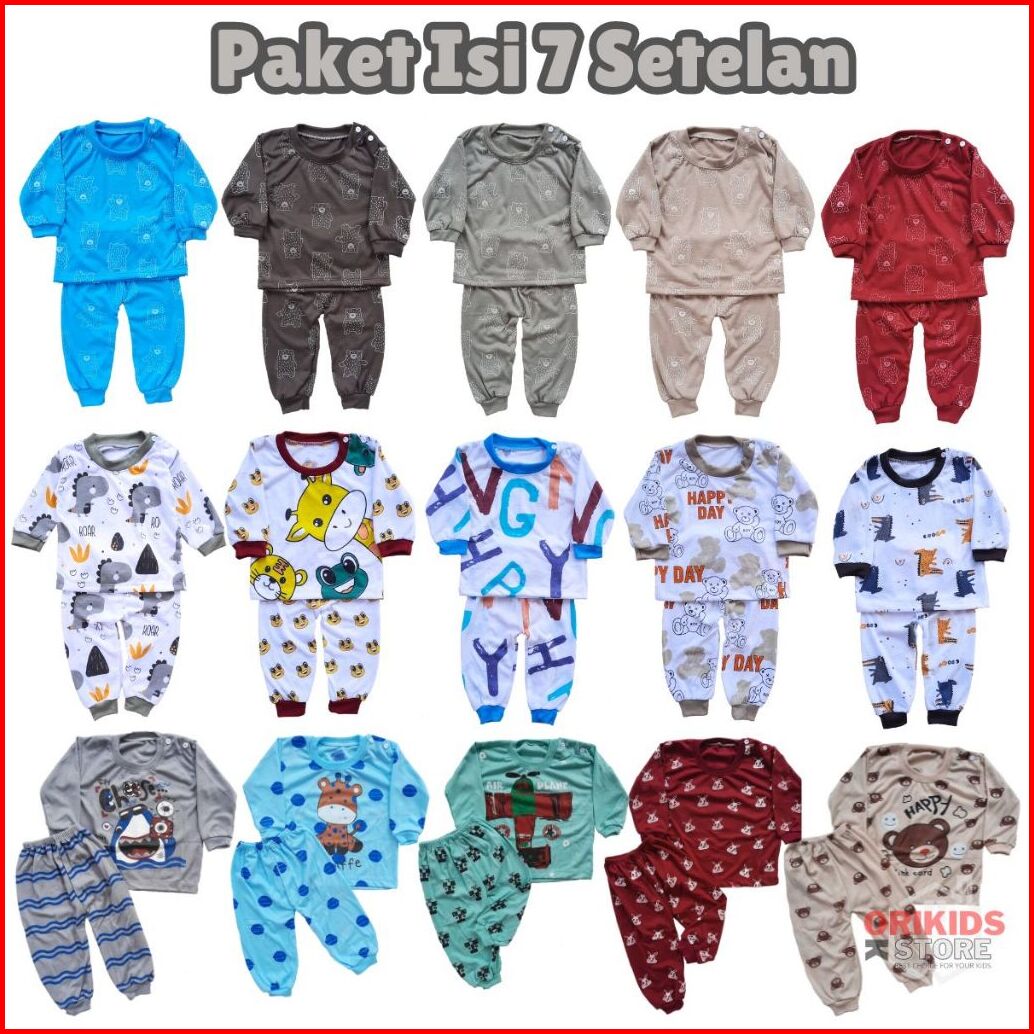 Promo Paket Bundling Isi 7 Setelan Anak 3-12 Bulan 1 Tahun Bayi Unisex Lengan Panjang Dan Pendek