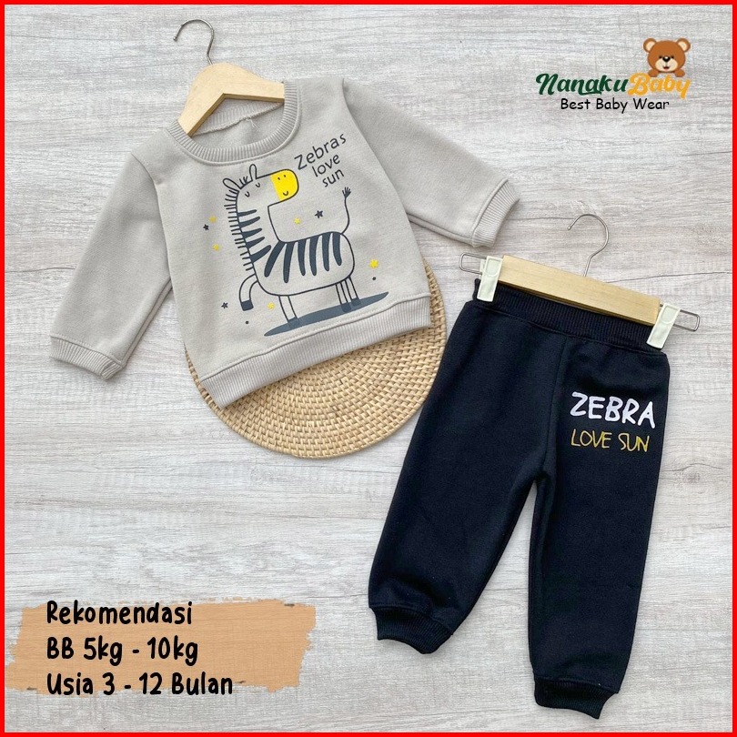 Nanaku Baby - Setelan Baju Bayi Setelan Joger Sweater Bayi Anak Usia 3-12 Bulan Motif Zebra