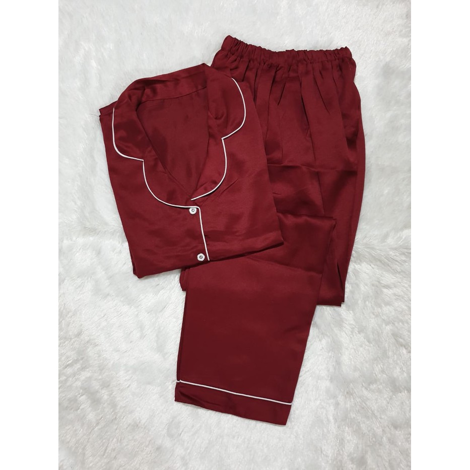 Baju Tidur/Piyama Wanita Satin Jumbo PP Tangan Panjang